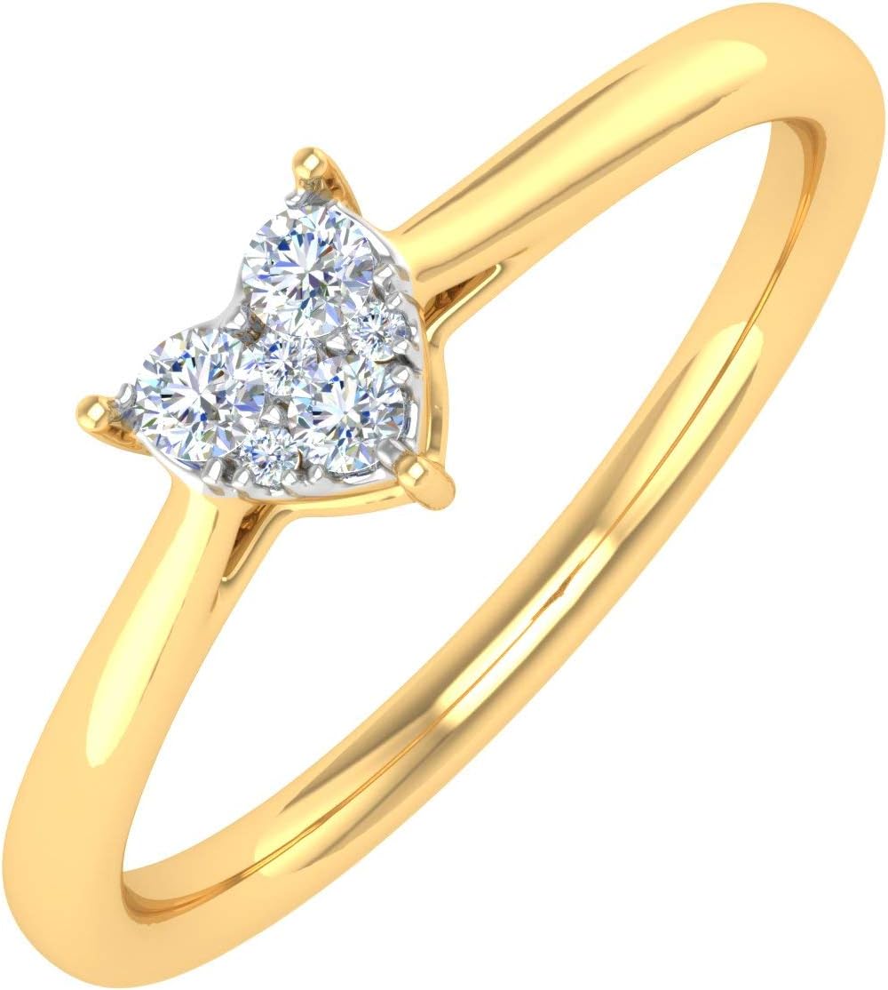 This unique heart shaped ring is a fusion of elegance and beauty. Made in 10k solid gold this ring features prong set round diamond of 0.15 carat weight. This ring is made in an everlasting design that resembles your love that shall never fade.