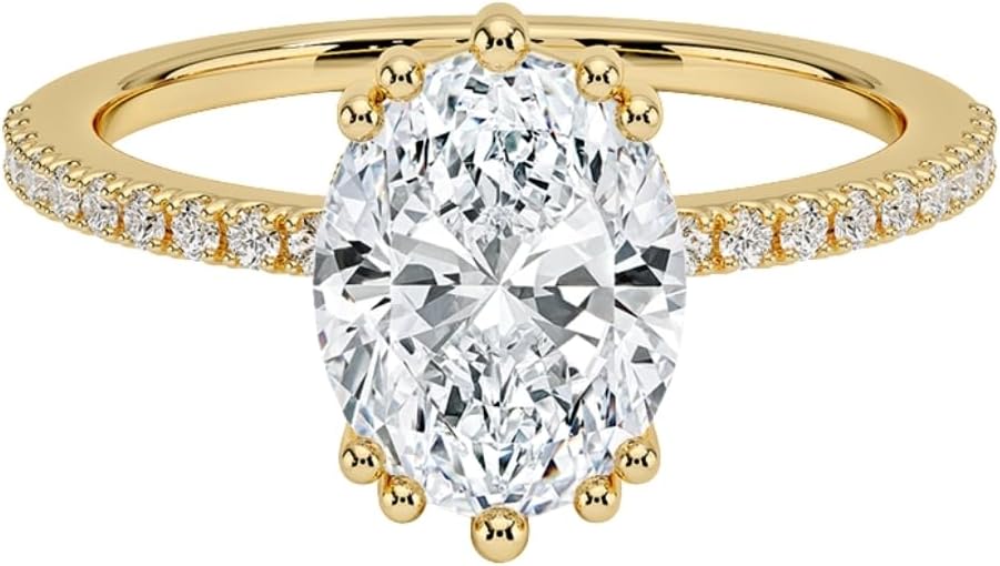 Dainty Oval Lab Grown Diamond Promise Ring, Diamond Set in Multi Prong, Scalloped Pave, Diamond Engagement Ring for Women, Ring in Yellow, White, Rose Gold, Lab Created Diamond Engagement Ring, Conflict Free Diamond Ring, Handmade Jewelry by MITALI JEWELS LAB GROWNLab Diamond is also known as Lab Grown Diamond, CVD, HPHT, Green Diamond, Eco-Friendly Diamond, Ethical Diamonds, Earth-Friendly Diamonds, or Man-Made Diamond.Center Diamond Details Shape: Oval Brilliant CutCarat: 1-5 CTColor: E-FClarity: VVS2 Measurement and Carat Weight:1 Carat (8x6 MM)2 Carat (10x7.5 MM)3 Carat (11.5x8.5 MM)4 Carat (12.5x9.5 MM)5 Carat (13.5x10.5 MM)Side Diamond Details Shape: Round Brilliant CutCarat: 0.20 CTColor: E-FClarity: VVS2 Metal Details (Customize)Metal: 10K 14K 18K Solid Gold (Rose, White And Yellow Gold)Metal Stemp: 10K, 14K, 18KSetting: Multi Prong, Scalloped PaveRing size: 3 to 12 USBandwidth: 1.60 MMProduction Method: This ring is entirely handcrafted, with the stone expertly cut and polished by our skilled artisans.Crafted with precision and care, this ring is a beautiful choice for women who value both beauty and sustainability. From Oval Hidden Halo diamond wedding rings to lab-grown diamond Engagement Ring, this handmade jewelry piece captures the essence of elegance.