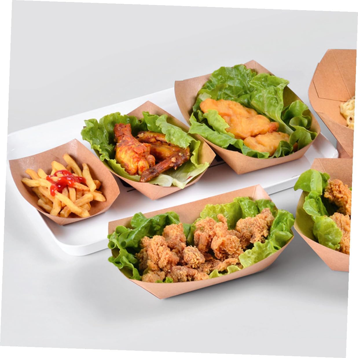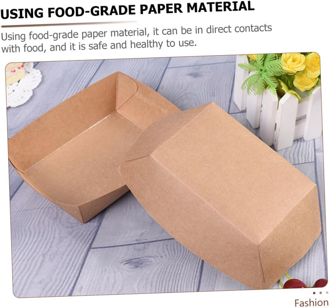 Package List Paper Food Boxes Features -Color: Khaki -Material: Paper -Product Info:Oil-proof meal box -Size: 20.00X15.00X4.50cm/7.86X5.89X1.77in -It is very suitable for home kitchen, baking snack bar, party carnival, birthday, holiday and picnic french fries boxes. -The built-in film is waterproof and oil-proof to prevent leakage, which can bring you a better experience food takeaway containers. -It adopts an open design, which is convenient for holding food, and folding design, which is convenient and practical chicken snack container. -It can be filled with French fries, chicken popcorn, popcorn, fried chicken, cakes, etc disposable french fries holder. -Using food-grade paper material, it can be in direct contacts with food, and it is safe and healthy to use.Goods Descriptionfrench fry holder A convenient way to put food at a birthday party or picnic, which is suitable for sharing with friends and family.disposable french fries holder Essential packing boxes for food stores, restaurants.fried food holder Large quantity of paper food boxes are enough for daily use