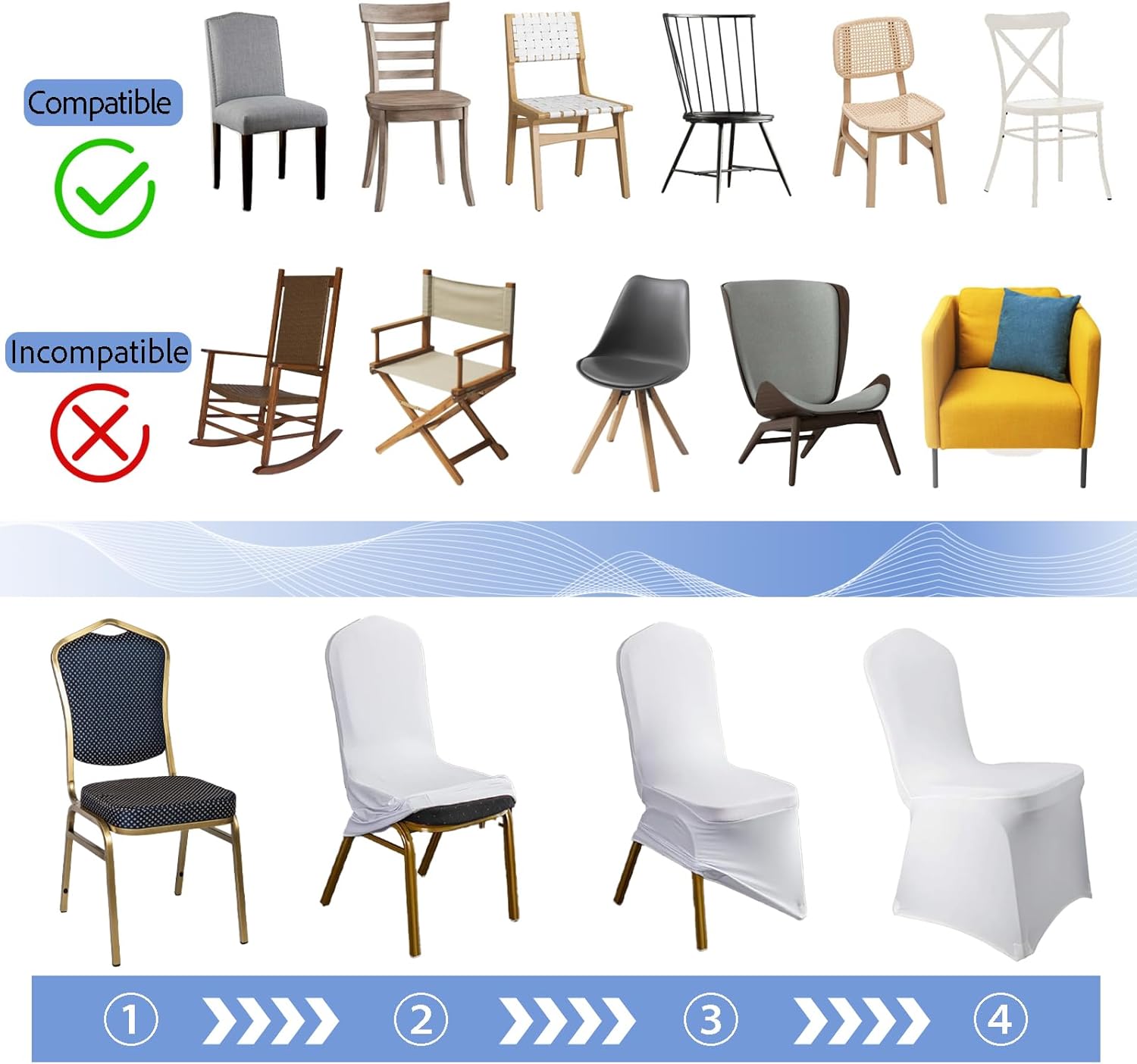 100 Pack Spandex Chair Sashes Bows and 60 PCS Stretch Spandex White Chair Covers