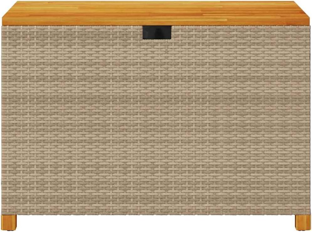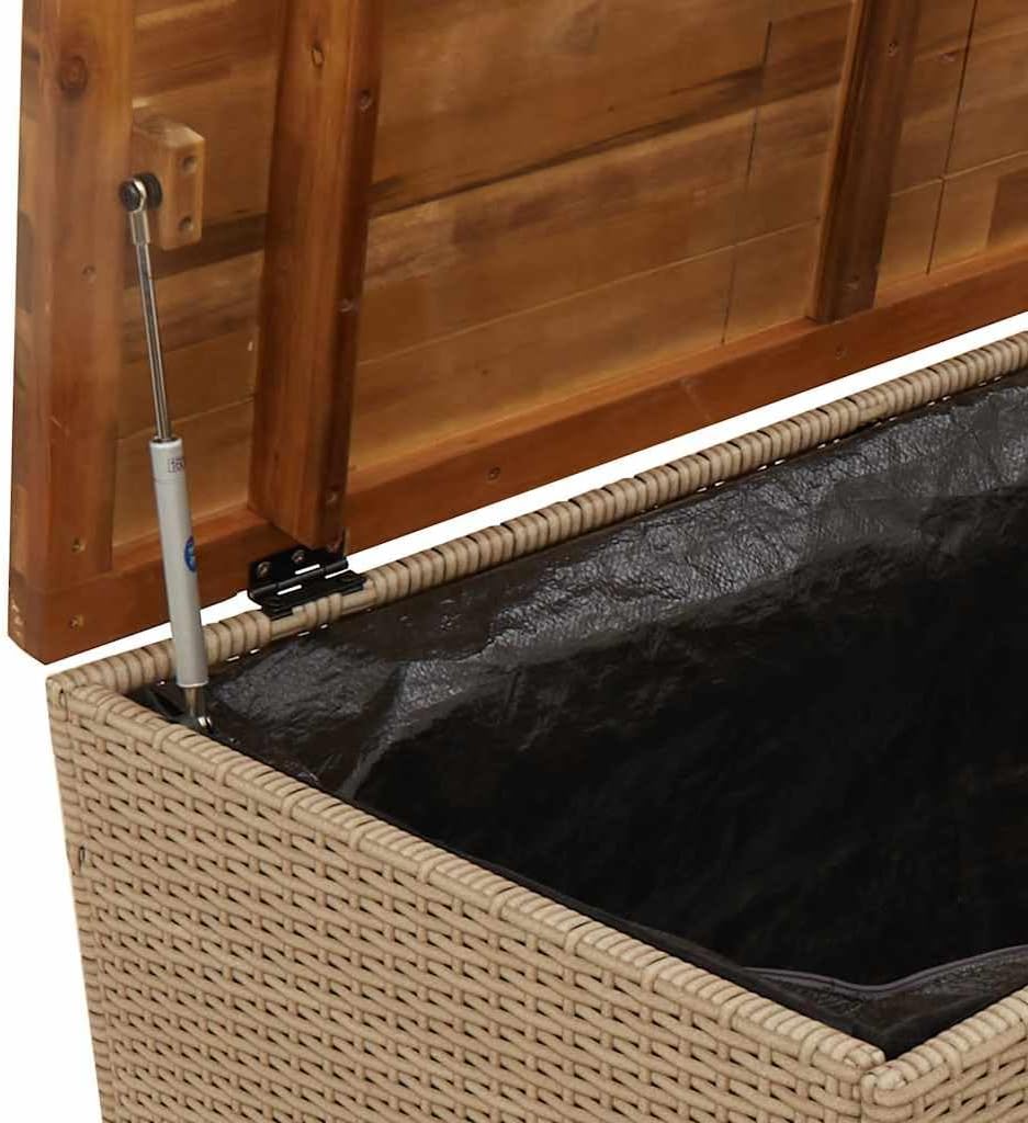 This garden storage box is a handy piece of outdoor furniture,for stashing garden cushions, accessories, and more. Its modern look, with a lovely beige and brown finish, adds style to any outdoor patio or garden, making it both practical and a charming addition to your outdoor aesthetic.Ample Storage: Plenty of room for all your outdoor gear.for keeping your patio neat and storing everything from cushions to blankets in one handy spot.Durable Materials: Made with UV- stuff, this box can take the sun, meaning it’ll last and look good for a long time.Easy to Access: The gas spring allows you to open the lid smoothly, so getting to your gear is quick and easy.Weatherproof Design: Built to brave the elements. Cover it when not in use to keep it looking good for years.Exceptional Style: Blends function with good looks, the oiled acacia wood adds a classy touch to your outdoor area. The woven style is both chic and functional.Color: Beige Shape: RectangularMaterial: Synthetic Poly RattanFinish: Oiled Indoor/Outdoor: Outdoor OnlyRoom: Garden and terraceMaximum Number of People: 2Maximum Weit: 705 lbsDimensions: 21.7 x 43.3 x 24.8 in. (W x L x H)Weight: 33.07 lbsDelivery Contains: Garden storage box, water- bagAssembly Required: YesRecommended Number of People for Assembly: 1