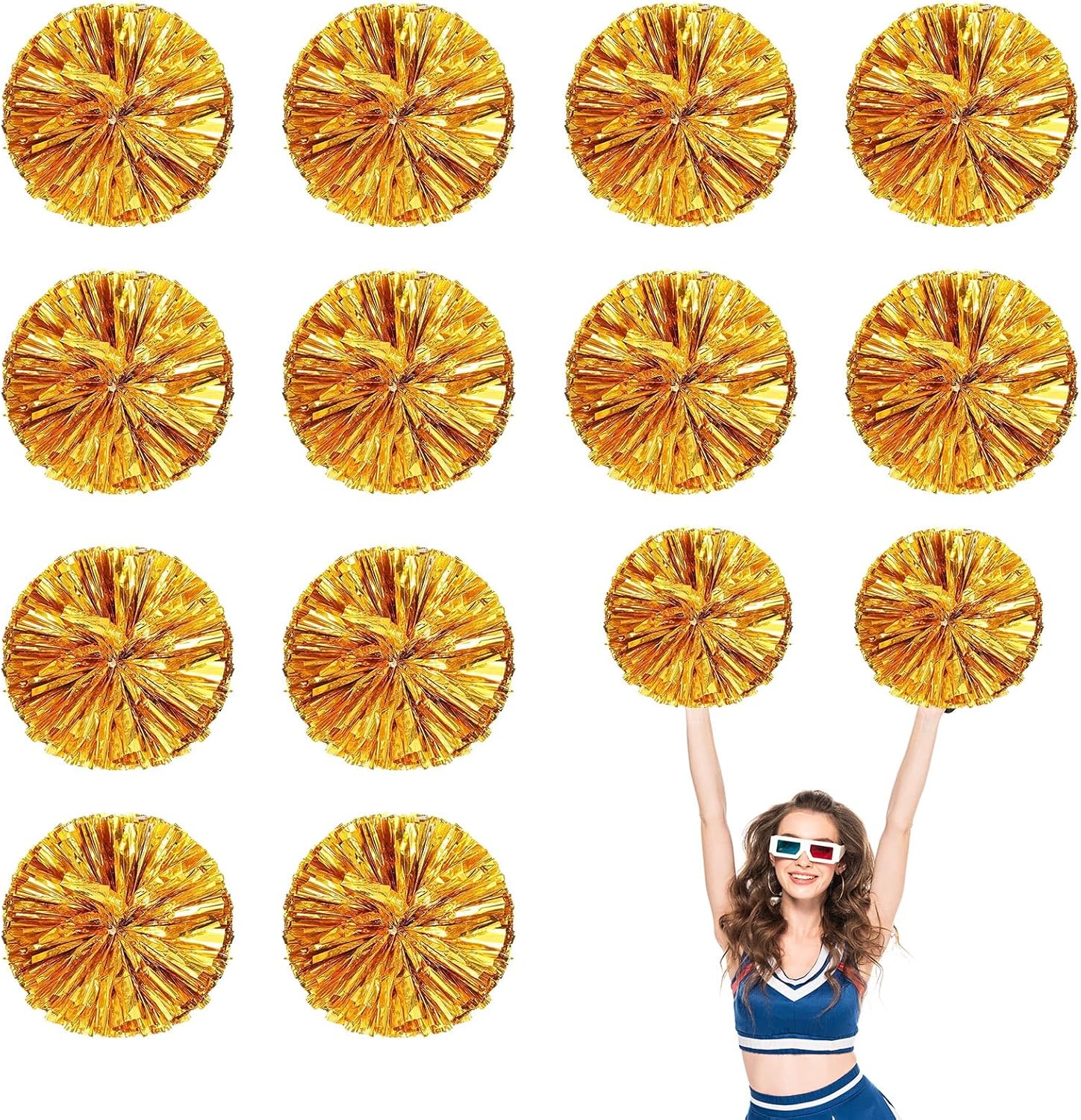 Convenient use: The cheer plastic pompoms bulk have rubber bands on both sides to hold them in place, to use, just remove the rubber bands and shake them a few times to puff them up. Specifications: Material: metal foil, plastic Size: 35 cm/ 13.8 inches