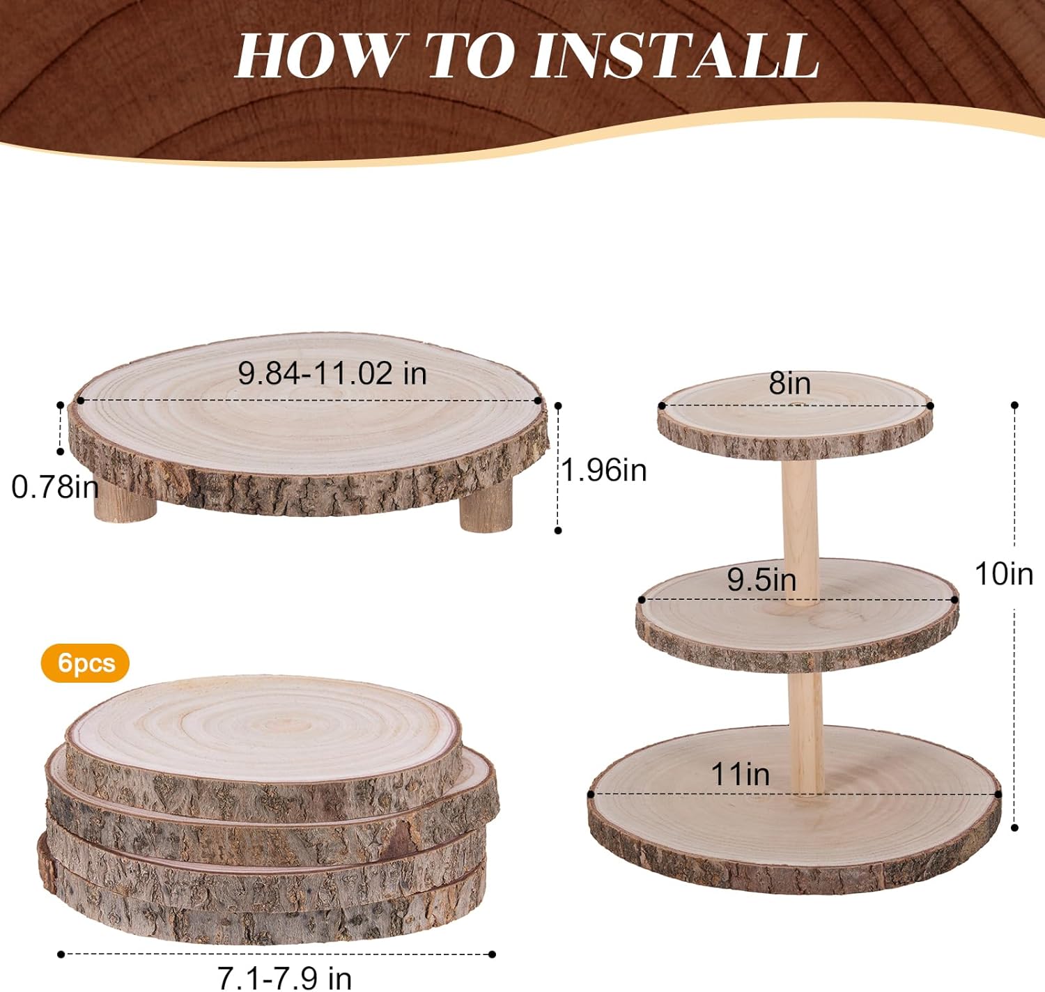 Features: Widely Application: Not just for cupcakes but also for other tantalizing treats and desserts, our wood cupcake stand is impressively versatile. Use them to display macarons, cookies, or other sweet treats at weddings, birthday parties, to create a memorable dessert table. You can also hang them on walls in the bedroom, kitchen, office and other places Easy to Clean: The surface of the cupcake display stand featuring a smooth and seamless finish that prevents stains from penetrating. After a party, cream and stains can be easily wiped away with a damp cloth, making the maintenance and cleaning of the cupcake tower very easy. Specifications: Material: wooden Color: natural wood color Size: Honeycomb Cupcake Stand: 4.95 x 2.95 inches 3-tier Wooden Cupcake Tower: diameters range from 7.1"-11.8", single-tier round cake stand measures approximately 2" tall Single-tier Wooden Cupcake display: diameters range from 9.84"-11" Wood round Slices Tray: diameters range from 7.1-7.9inches Package includes: 7 x Honeycomb Cupcake Stand 1 X 3-tier Wooden Cupcake Tower 1 x Single-tier Wooden Cupcake display 4 x Wood round Slices Tray Notes: Manual measurement, please allow slight errors on size. The color may exist a slight difference due to different screen displays