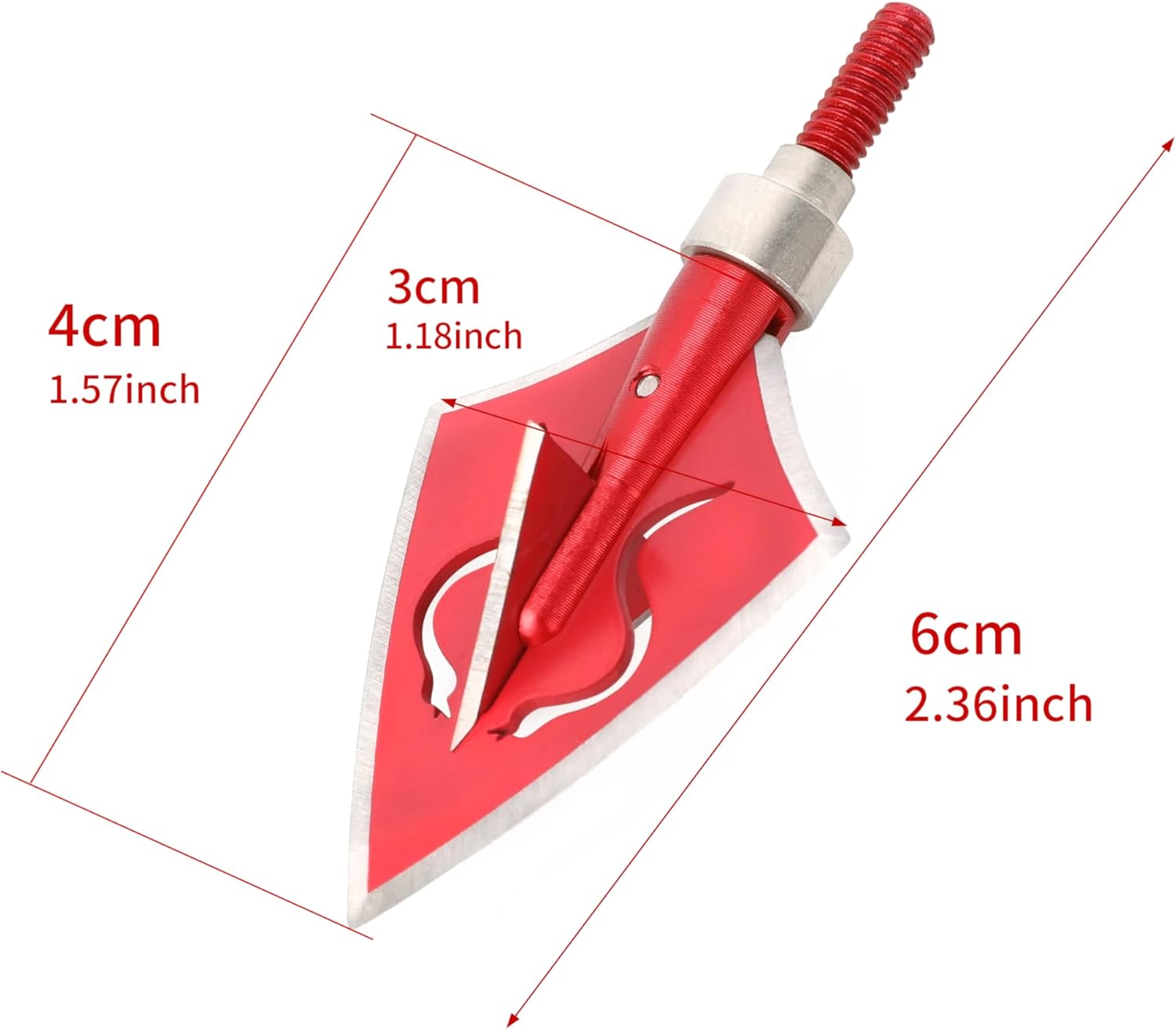 Item name: Hunting arrowheads Material: Stainless steel Size: 6*3 cm Weight: About 8.3g Packing: 12pcs Note: 1.Due to shooting angle and light. There will be errors in color. 2.The above parameters are all measured manually, there will be errors. The actual item shall prevail.