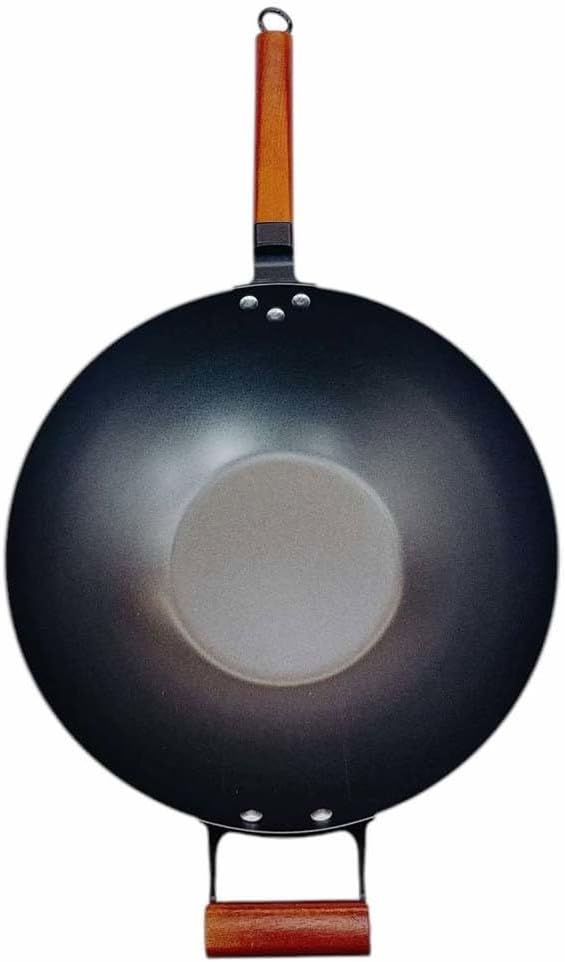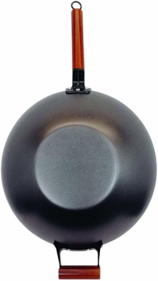 13.5" Carbon Steel Wok Pan, Stir Fry Pans with Flat Bottom - Pow Wok - Traditional Japanese Chinese Cookware for Induction Electric Gas Stovetops - Open Fire, BBQ, Grill, Outdoor Camping Flat bottom is specially designed to lock the juice and flavor inside ingredients. Our outdoor wok is conveniently designed for use as a camping wok, wok BBQ, grill wok This large wok pan is made from heavy-duty, black carbon steel. The ergonomic design of the wooden handle ensures a comfy grip when you use this pow wok EASY HANDLING and STORAGE: Our steel wok is convenient to carry and easy to store Depth: 3-3/4'' *Estimated Only*Handle Length: 7-5/8'' *Estimated Only*Unit Weight: 3 LbsUnit Overall Dimensions (Handle to Handle): 25''L x 13-1/2''W x 3-3/4''H *Estimated Only*Quantity: 1