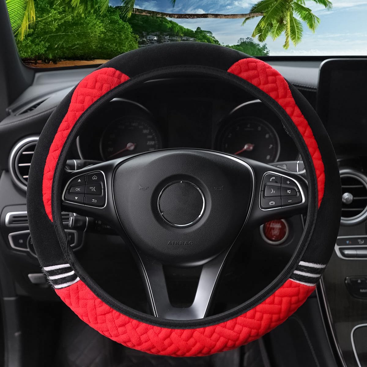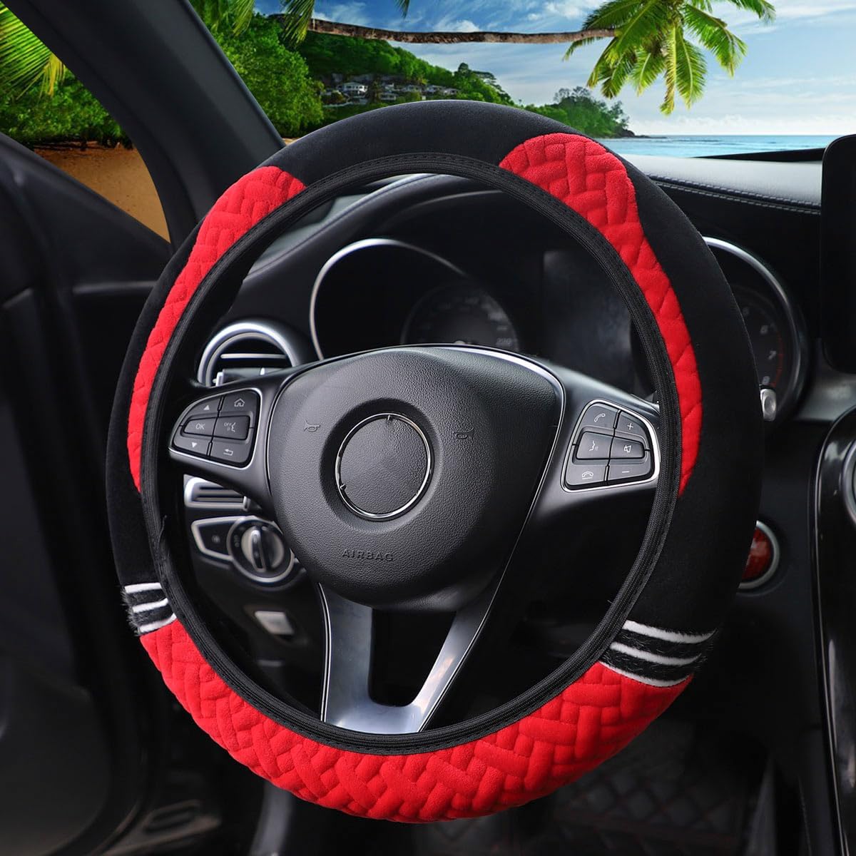 Specifications: Material: Plush Matching Steering Wheel Diameter: 14.5"-15" Colors: White, Pink, Black Red, Red Black, Gray, Blue, Purple Package Content: 1 * Car Plush Steering Wheel Cover -When you are driving your car, the feeling of holding the steering wheel in your hands is crucial to the driving experience. Our plush car steering wheel cover is made of high quality plush material, soft to the touch, making you feel cozy and comfortable while driving! -Using delicate plush material, soft and cozy, adding warmth and comfort to your driving experience. -Suitable for all kinds of car models, so you don't need to worry about the problem of mismatch. -Unique style shows your taste and personality.