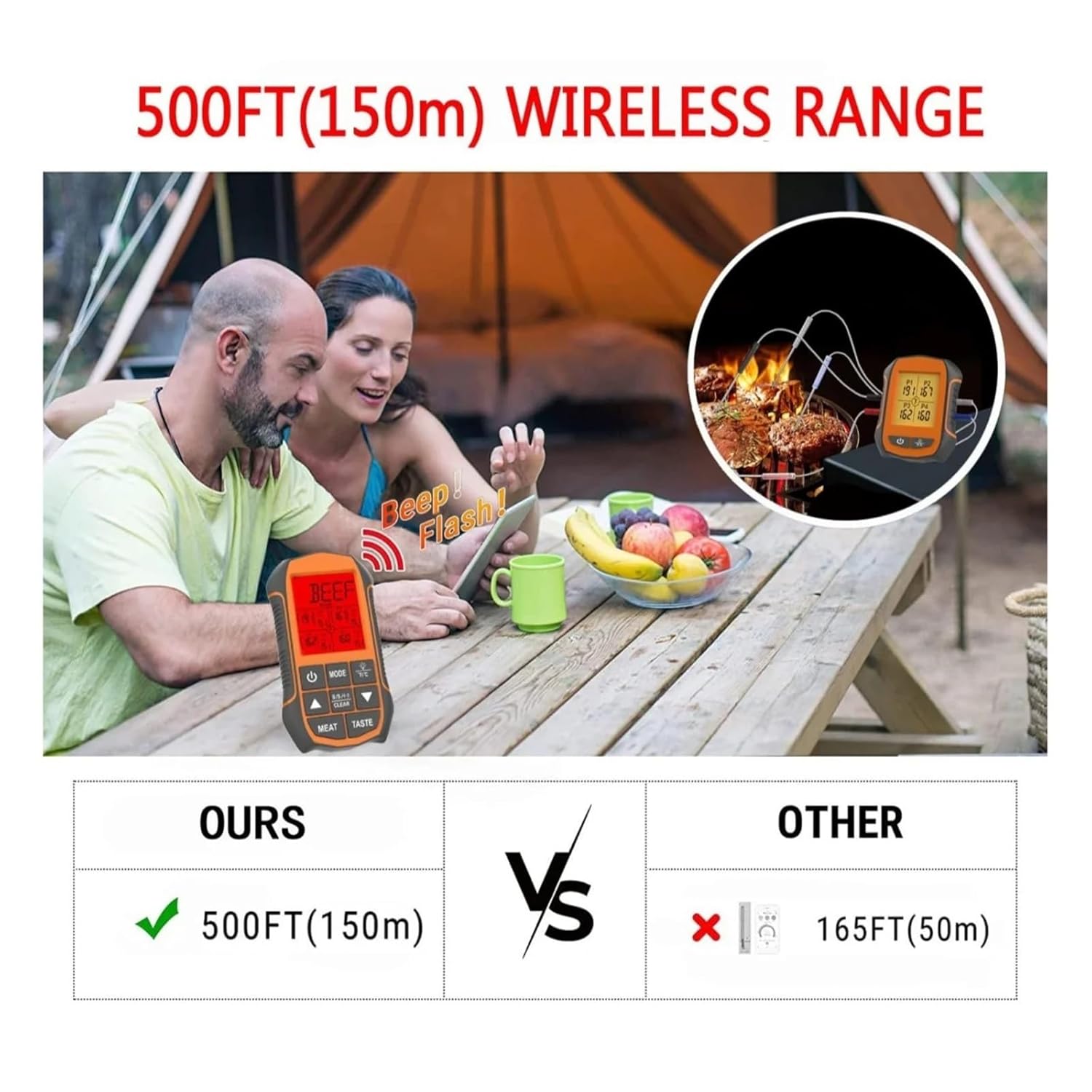 Introducing the 150m Wireless Monitor Food Thermometer, your ultimate 4-in-1 cooking companion. This innovative thermometer not only measures meat temperatures accurately but also serves as a timer, ensuring your dishes are cooked to perfection every time. With a wireless range of up to 150 meters, you can monitor your cooking from anywhere in your home. The user-friendly design features a clear digital display, making it easy to read temperatures and timer at a glance. Whether you're grilling, baking, or roasting, this versatile tool is essential for any kitchen. Plus, its construction makes it easy to clean and maintain, providing you with reliable performance for years to come. Elevate your cooking experience with our premium food thermometer today!