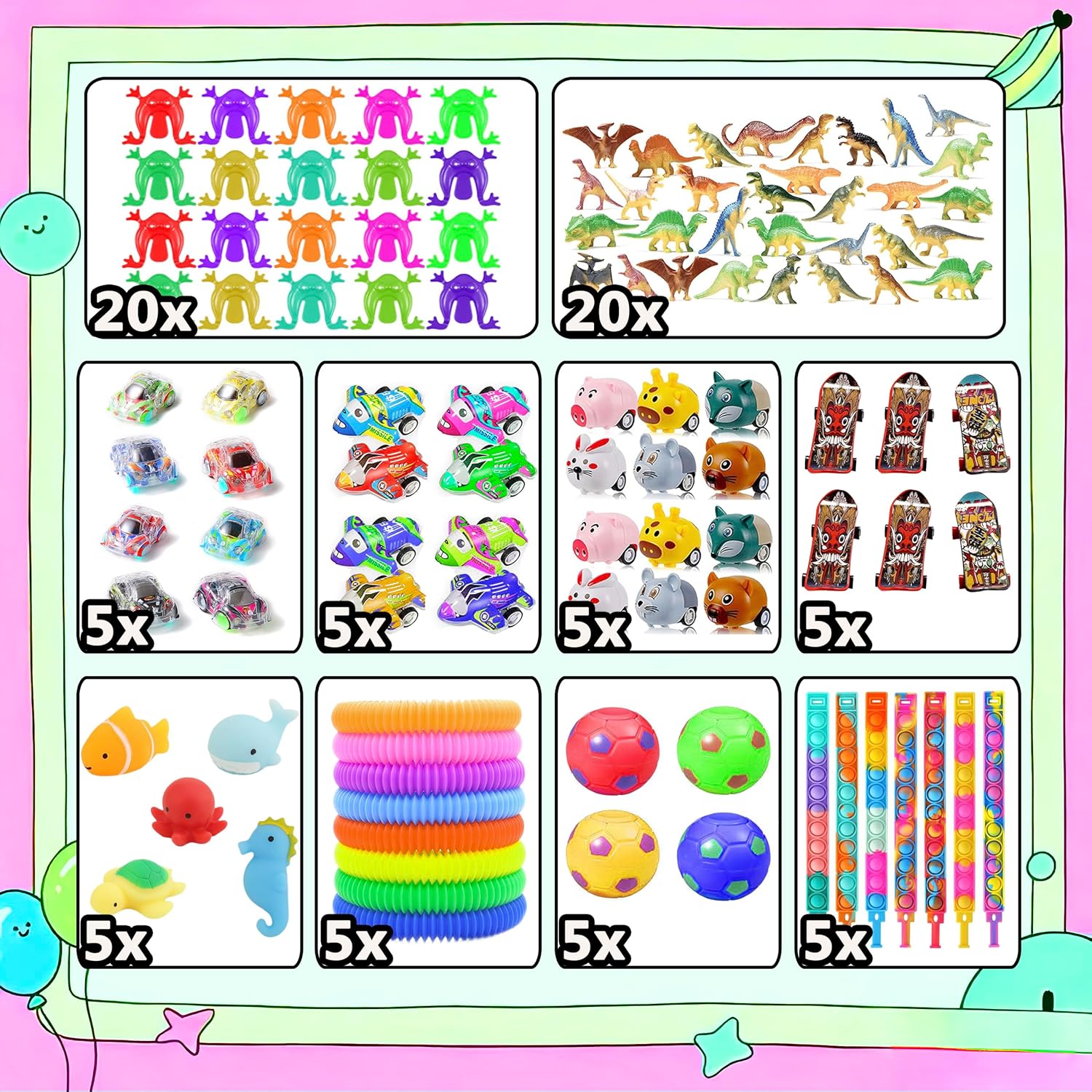 | Included Components | Fidget toys, Party Favors for Kids, Party Favors for Kids 8-12, Pinata Stuffers, Treasure box toys for classroom |
