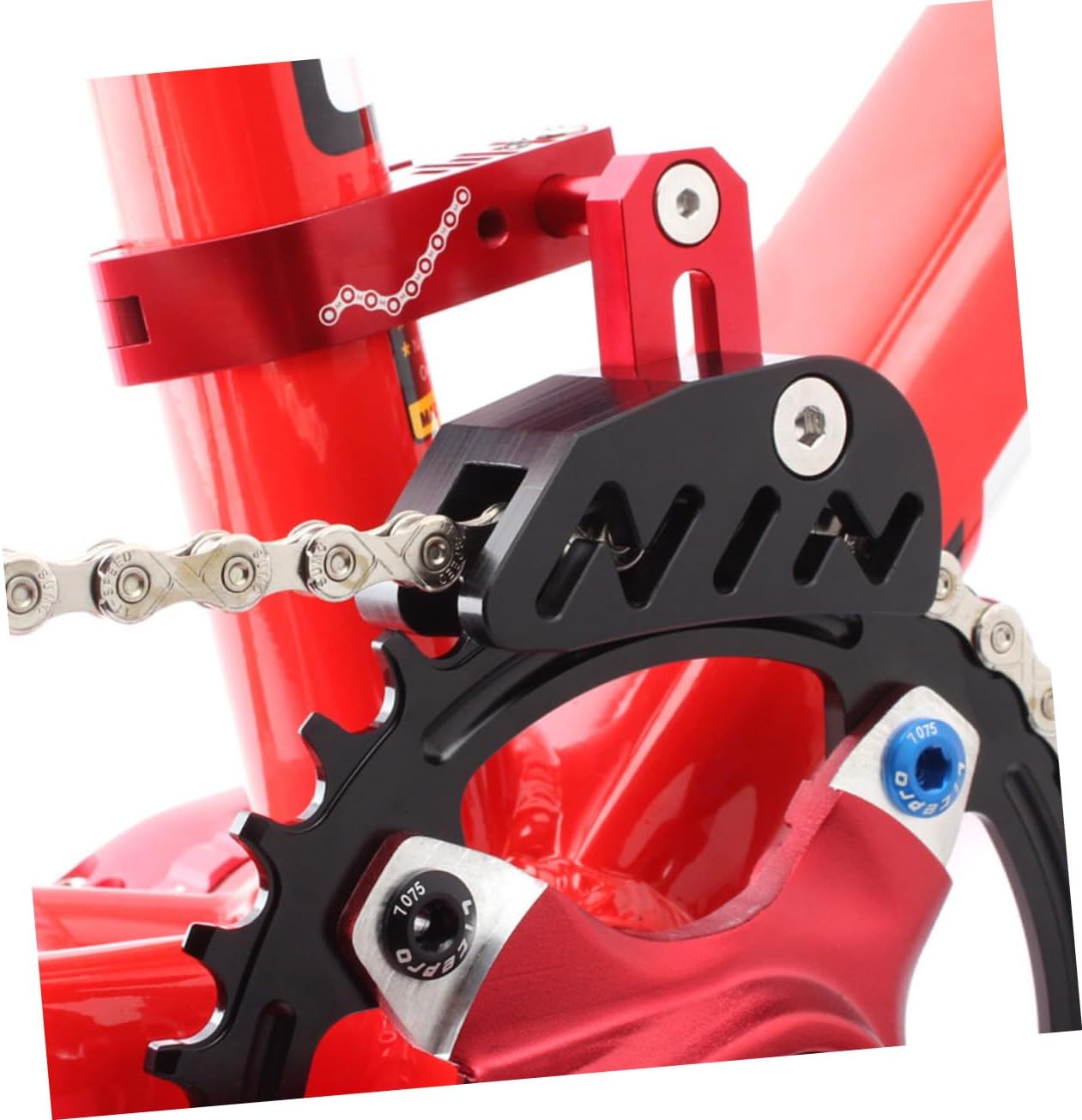 Package Include 1 x chain guide 2 x adapters 3 x wrenches Features -Size: 9.00X8.00X6.00cm/3.54X3.14X2.36in Bike Chain Deflector -Material: Aluminum Alloy, POM Single Disc Chain Guide -Color: Red Bike Accessories - Double locking structure design, sturdierin fixing the bicycle Bike Chain Guide. - Hollowed design, ensure the firmness ofthe structure while reducing the weight Bike Protector. - With conversion sleeves, you can use iton 31.8mm or 28.6mm diameter seat post Bike Tensioner. - Adopt aluminum alloy material, highstrength, lightweight, sturdy and wear-resistant Front Derailleur. - Surface anodic process,resistant against during use Bike Guide Wheel Accessories.Goods InformationBike Chain Stabilizer The chain guide stabilizer tensioneris convenient and practical, with excellent texture, and can serve you for along time without being easily damaged.Chainring Guard The craftsmanship can serveyou well without breaking easily.Chain Clamp Guard This is a very practical chain guide stabilizertensioner