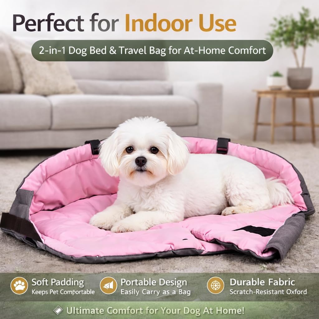 Transform your pet's travel experience with this versatile 2-in-1 pet carrier that doubles as a cozy bed. Featuring a sophisticated gray Oxford fabric exterior with pink interior accents, this extra-large carrier provides both style and functionality. The scratch-resistant cushioning ensures lasting comfort for small to medium-sized dogs and cats, while the durable construction makes it perfect for both indoor relaxation and outdoor adventures. The thoughtfully designed straps and closures allow for easy conversion between carrier and bed modes, making transitions seamless. The spacious interior offers ample room for your pet to move comfortably, while the premium Oxford material provides durability and easy cleaning. Whether you're heading to the vet, traveling, or simply want to give your pet a luxurious place to rest at home, this carrier bed combination offers exceptional versatility and comfort. The adjustable safety straps ensure secure transport, while the plush cushioning provides a comfortable haven for your furry friend.