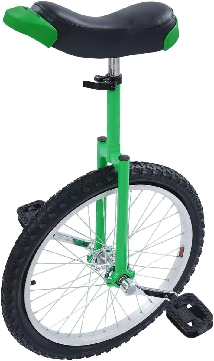 DescriptionOur unicycle will not only help you hone your sense of balance, but also help you build a toned physique. By riding this unique and elegant mode of transportation, you will enjoy the fun and fulfillment of exercise while improving your body coordination. It's a journey of skill and aesthetics that synchronizes your mind and body.DetailsPractical Handles: You can grab the handles at the front and back of the seat to ensure stability during the ride.Shock-absorbing Fork: It can effectively dampen your ride and improve the riding experience.br>SpecificationColor: Yellow/Blue/Green/Black/RedMaterial: Plastic, Aluminum Alloy, Rubber and FoamingAssembly Required: YesRecommended Height: 1.55-1.75m/5.09-5.74ftLoad Capacity: About 65-75kg/143-165lbsAdjustable Height: 78-90cm/30.7-35.43inProduct Size: 50.8*83cm/20*32.6inSeat Length: 30cm/11.8inPackage Size: 48*18*50cm/18.9*7.09*19.69inGross Weight: 5kg/11.02lbNet Weight: 4.75kg/10.47lbbr>Package Included1* Unicycle1* English User ManualOther Accessories for Assemblybr>Notes 1. Novices should ride under the instructions or accompany of their tutors for safety. And the best place for your training is a baseball field with a chain-link fence. Pick a grassy area with solid, flat dirt and you can hold onto the fence.2. Please read the English manual carefully before use and pay particular attention to the safety instructions contained therein.3. Please allow the slight color difference caused by the shooting light and 1-3 cm error due to manual measurement, and make sure you do not mind before ordering.