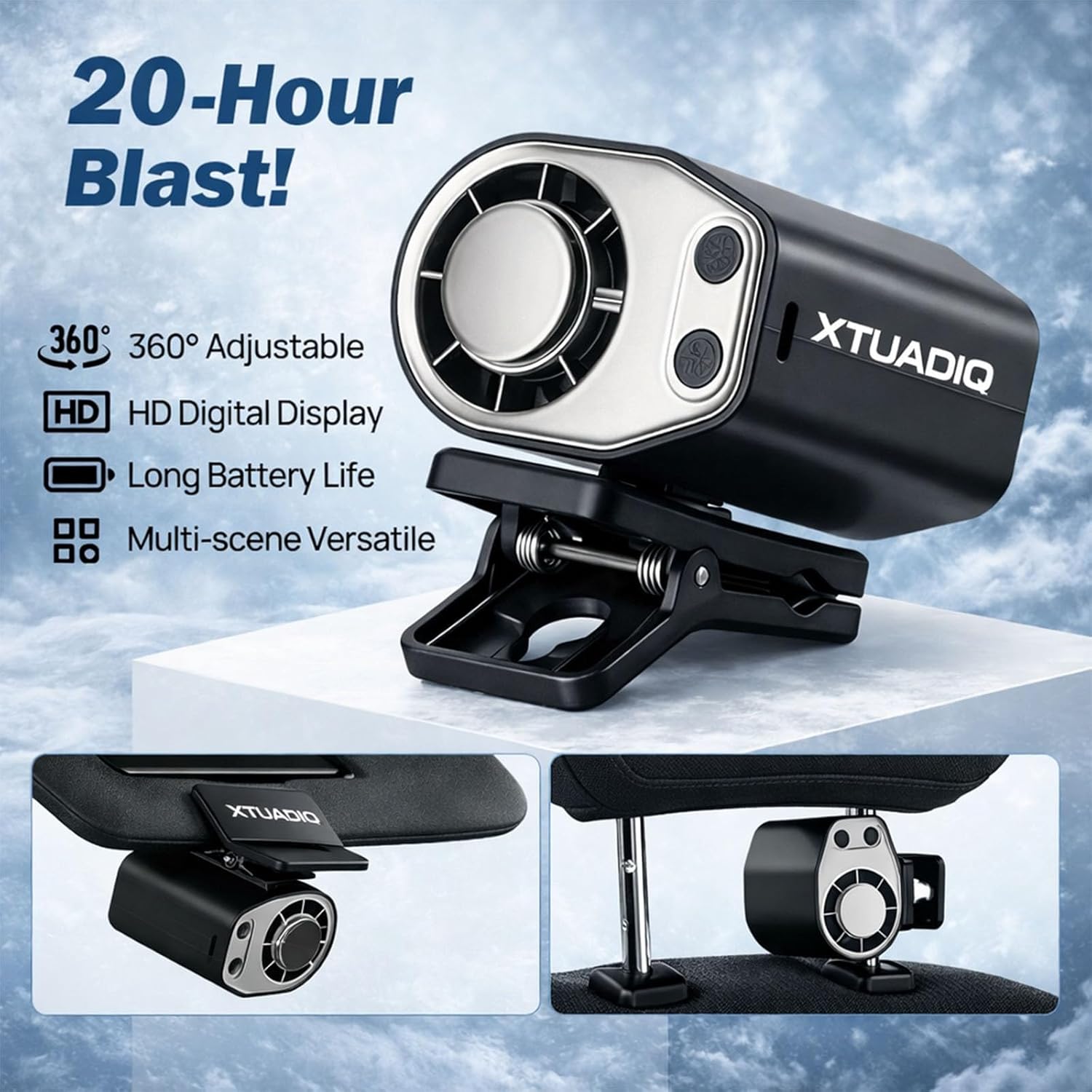 2026 Car Clip On Air Conditioner Fan·LED Display: This fan features an LED display for easy monitoring.·360° Rotation: Enjoy full rotation for optimal cooling.·199 Speeds Adjustable: Customize the speed to your preference.USB Rechargeable Personal Cooling Fan·USB Rechargeable: Conveniently recharge the fan using USB.·16℃ Semi-Cooling: Provides semi-cooling for comfortable use.·Wide Clamp: The 16℃ semi-cooling wide clamp ensures a secure fit.Battery Life·Battery: The 2000mAh battery.·Adjustable: The fan is adjustable for versatile cooling needs.Perfect for Car Use·Car Clip On: Ideal for car use, providing personal cooling.·Versatile: Suitable for various cooling needs.