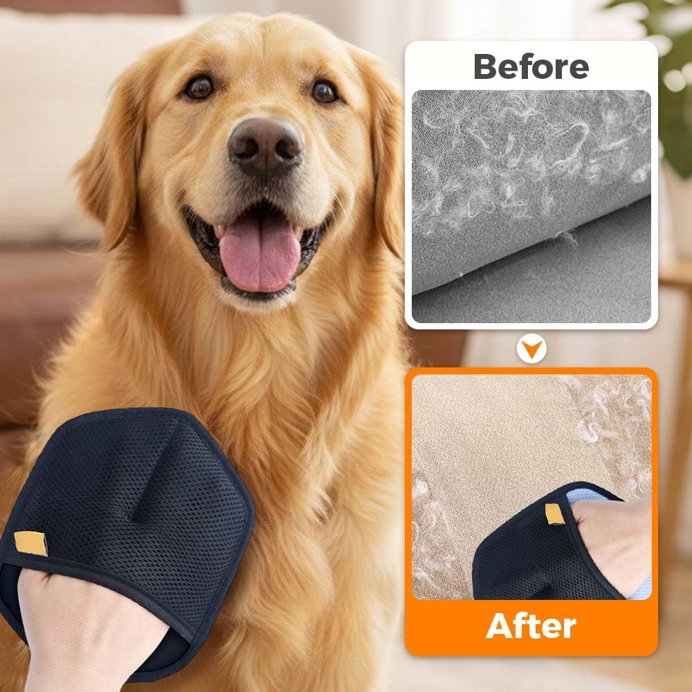 2026 Upgraded Pet Hair Removal Gloves for Cats and Dogs, The Magic Brush Pet Hair Remover for Furniture, Washable Reusable Electrostatic Gloves for Pets, for Clothing, FurnitureFeatures:1. Includes multiple gloves and a lint removal tool for daily use2. Combines brushing and static effect to lift pet hair and dust3. Simple glide motion removes hair from surfaces quickly4. Suitable for clothing, furniture, carpets, and car interiors5. Washable and easy to clean for repeated useSpecification:Name: Pet Hair Removal Gloves for Cats and DogsMaterial: ClothColor: Blue/Orange/BlackSize: 9.84 * 6.69 * 1.18inWeight: 42gPackage Includes:1/2PCS * Pet Hair Removal Gloves for Cats and DogsNotes:1. Due to different manual measurements, please allow for slight size differences.2. Due to differences in different monitors, the picture may not reflect the actual color of the item.Service:If you have any dissatisfaction after receiving the product please contact us in time. we'll give you a solution.