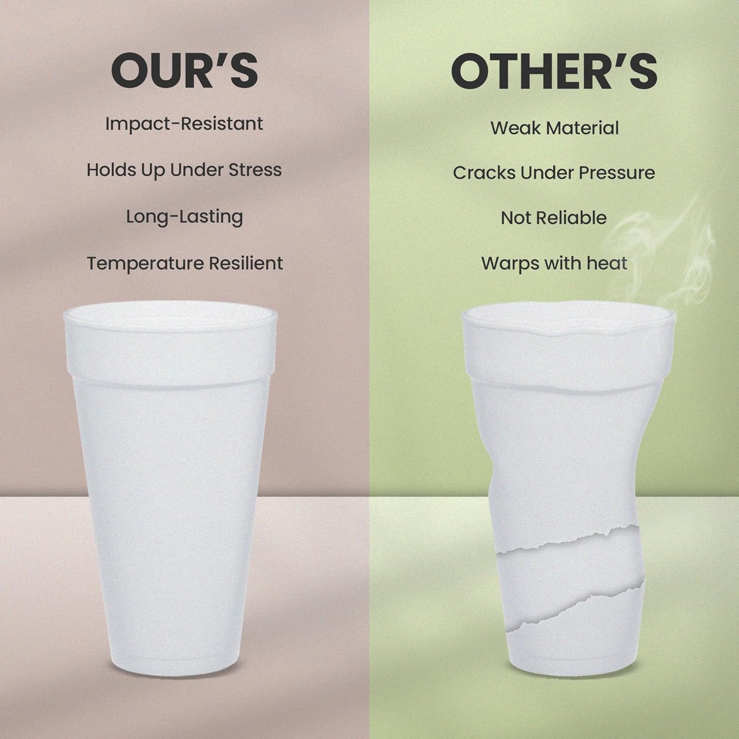 24 oz Insulated Foam Cups – Durable, Disposable, and Perfect for Hot & Cold Drinks Enjoy your beverages at the perfect temperature with our 24 oz insulated foam cups. Designed for both hot and cold drinks, these premium-quality white EPS foam cups are lightweight yet sturdy, making them ideal for personal and business use. Whether you need them for coffee, tea, soda, or smoothies, these cups provide reliable insulation to keep drinks hot or cold longer. Key Features: ✅ Superior Insulation – Keeps hot drinks hot and cold drinks cold without the need for sleeves. ✅ Durable & Sturdy – Made from high-quality EPS foam for a firm grip and minimal spills. ✅ Easy to Use – Lip stack design ensures effortless cup separation for quick serving. ✅ Perfect Size – 24 oz capacity with a 3.7” rim diameter, 6.9” height, and 2.4” bottom diameter. ✅ Versatile & Multi-Purpose – Ideal for coffee shops, businesses, catering, parties, and home use. ✅ Bulk Convenience – Available in large packs, perfect for stocking up for events and daily use. These 24 oz styrofoam cups are a must-have for restaurants, cafés, food trucks, and breakrooms. The built-in fill line ensures accurate portion control, making them great for serving consistent beverage sizes. Upgrade your drinkware with insulated disposable coffee cups that provide convenience, reliability, and premium performance. Perfect for on-the-go lifestyles!