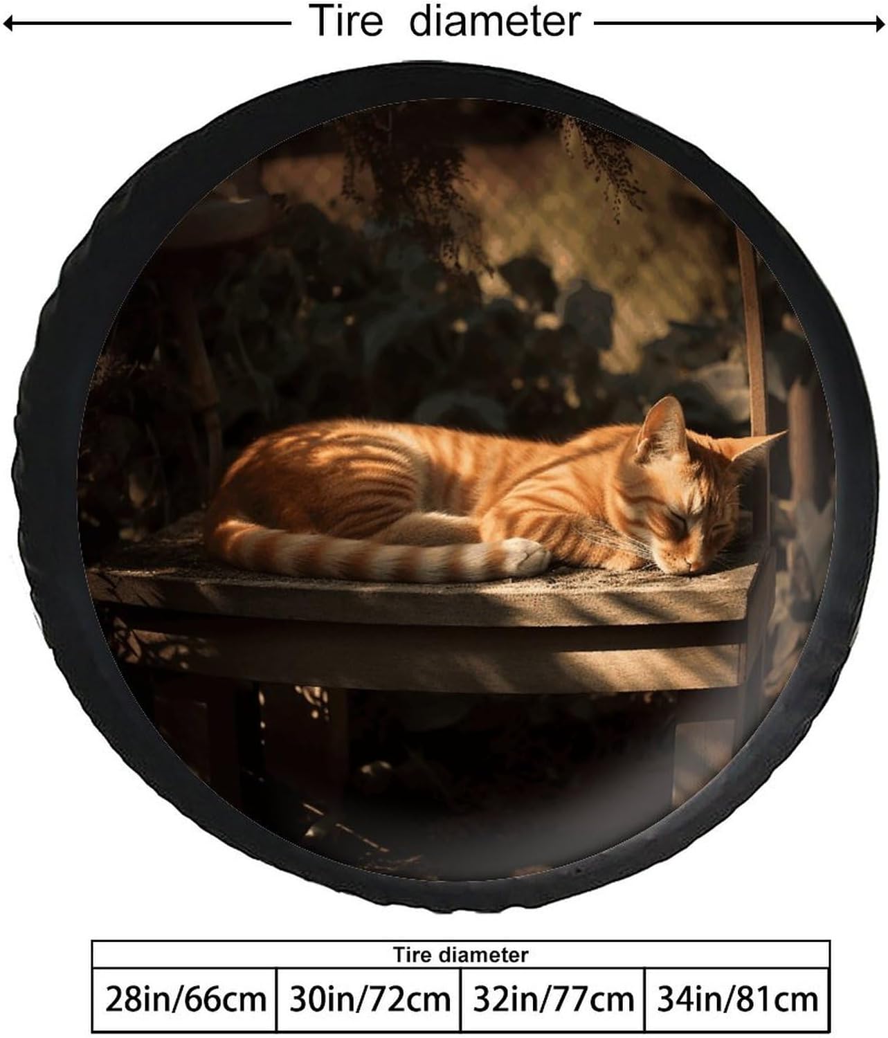 Looking for a Premium Orange Cat Sleeping jeep tire cover to protect your tires and enhance their appearance? Our leather tire cover is the ideal choiceCrafted from premium leather, this tire covers for trailers is built to last. Advanced UV printing technology ensures the design on the cover is not only crisp but also fades quickly. Its excellent water and stain resistance makes it suitable for all weather conditions, whether rain, snow, or even strong sunlight. It effectively prevents water, snow, dust, and other debris from damaging your tires, preventing rapid tire degradation and extending their lifespanThe user-friendly design of this tire cover is another highlight. The adjustable polyester drawstring allows you to easily adjust the size to fit your tire, ensuring a secure fit. Installing or removing the tire cover is a breeze, requiring no tools, saving time and effortThis leather tire cover features a universal design that fits a variety of vehicles, including Jeeps, trailers, RVs, and SUVs. It not only provides reliable protection but also adds a stylish touch to your vehicle, making it stand out from the crowdMaintenance is also simple—just wipe it down regularly to keep it in top condition
