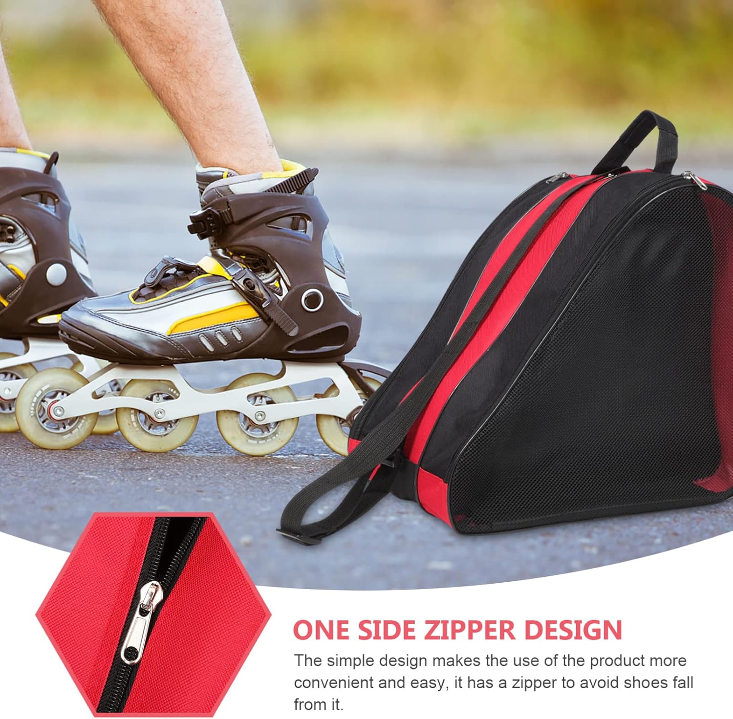 Package List 2 x skate bags Characteristics -Size:51.00X30.00X9.00cm/20.04X11.79X3.54in skates storage case -Material:Oxford Cloth skating accessories -Color:Multi roller skates women -It has a simple design, but very in use, giving you a of this Roller Skate Bag ice skate bag adult. -This roller skate bag is easy to use and clean, bring much convenience to you, you can use it with confidence roller skates holder. -A nice equipment for carrying ice skates, roller skates or inline skates shoes, can be a good helper for shoe protector skate bag. -Beautiful color, make it looks stylish and fashionable, suitable for outdoor use, can be a good present for who has skate shoes zipper skate shoes bag. -The bag is made of material for long time and use, suitable for installing roller skates for or adults skates shoe case.Goods Descriptionzipper skate shoes bag This bag is breathable and can offer your a good experience.skate bag You can carry your roller skates easier with this convenient storage bag.bag roller It is made of , which can be used for a long time.skates packing pouch Bright color and fashionable look, this Roller Skate Bag is suitable for outdoor use