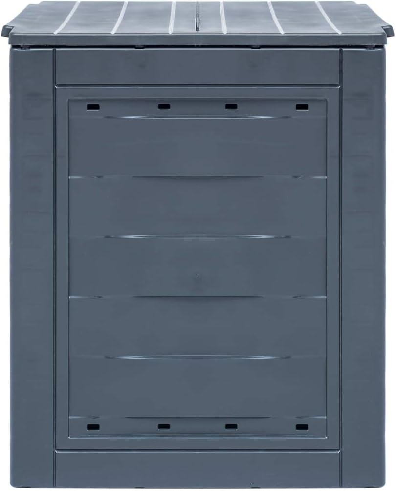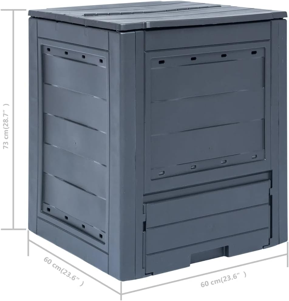 Our garden composters in a rattan look will surely be a perfect option to collect organic waste, including leaves, weeds, and lawn clippings.The compost bins are made of plastic which makes them UV and weather resistant. The units have a lightweight body as well as a neat appearance. They have split lids for optimal irrigation and ventilation. Thanks to ventilation holes in side parts, the waste boxes can exquisitely achieve optimal composting. These square composters will come in very handy when recycling, and meanwhile they will blend naturally into any garden.Delivery includes 2 garden composters.Color: GrayMaterial: PlasticSize: 23.6" x 23.6" x 28.7" (W x D x H)Capacity (each): 68.7 galSplit lid for optimal irrigation and ventilationSide parts with ventilation holes for optimal compostingUV and weather resistantDelivery includes 2 garden composters