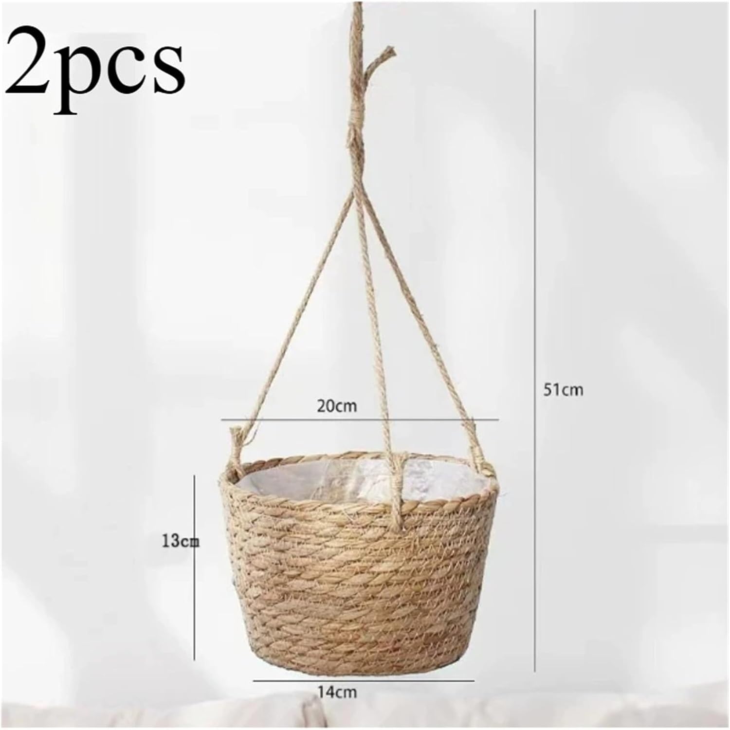 2pcs Gardening Flower Pot Hanging Basket Garden Hanging Planter Macrame Plant Storage Basket Indoor Outdoor Flower Pot HolderProduct name: Flower pot hanging basketProduct material: straw wovenProduct size: as shown belowTip: Due to the different measurement tools and measurement standards, there are slight errors in size. Please refer to the actual object.All photos are taken in real objects, but due to shooting technology/ambient light/display color difference, etc., the picture may have a slight color difference between the actual object. Please refer to the color of the actual object in the end.==========High-concerned chemical : NoneDear Customers, welcome to our store.We truly appreciate you selecting our products and services. Our team has always been dedicated to delivering items that align with their listed descriptions, along with attentive customer support. You can conveniently pick out the perfect products based on your specific needs and preferences.Should you have any questions while browsing our listings or completing your order, please don’t hesitate to reach out to us through the Amazon Buyer-Seller Messaging Service. We will respond to your inquiries with clear answers as promptly as possible.Thank you once again for your trust in our store. We hope you enjoy a smooth and satisfying shopping experience with us!