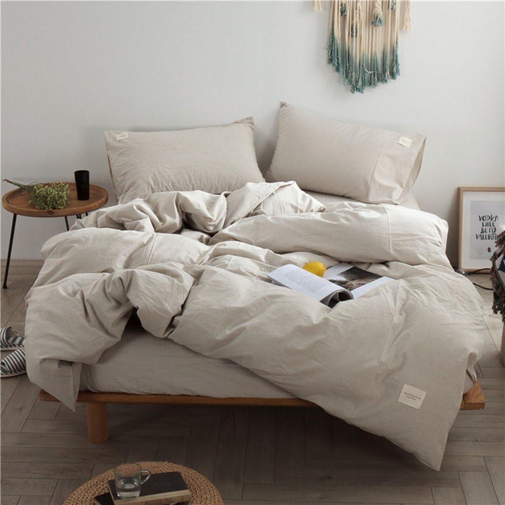 Add a touch of understated luxury to your bedroom with the casual yet cozy Washed Linen Duvet Cover. This 100% organic cotton duvet is garment-washed for lived-in softness and a relaxed look. Crafted from the finest cotton, the ultra-soft linen bedding instantly brings a relaxed, lived-in look to any room's decor - A healthier choice for your home and the environment. Superior quality with an exceptional softness and long lasting durability. Our duvet cover set will offer an gorgeous look to your bedroom. Material: 100% organic cottonPack contents: Including 1 duvet cover and 1 sham with twin size, 2 shams with full/queen and king size Measurements: Queen size 1 duvet cover(90"x90") and 2 shams(20"x26")Washing instructions:Machine wash on cold, Tumble dry on lowBest for Any Room in your House Bedroom, Guest room, Kids room, RV, Vacation home. Great Gift Idea for Kids, Men and Women, Moms and Dads, Valentine's - Mother's - Father's Day and Christmas.