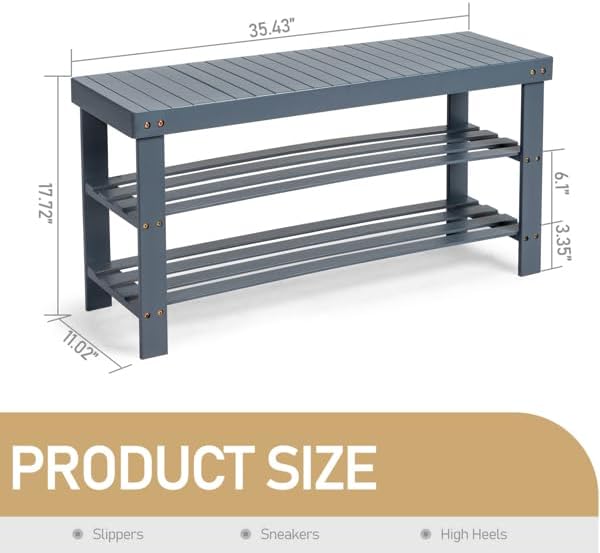 Keep your entryway or closet organized with our 3-Tier Bamboo Shoe Rack with Seamless Top. Crafted from high-quality bamboo, this eco-friendly shoe organizer is durable, moisture-resistant, and adds natural elegance to your space. The three-tier design provides ample storage for multiple pairs of shoes, while the seamless top adds a stylish touch. Compact yet sturdy, it’s perfect for small spaces and complements any home decor with its sleek gray finish.