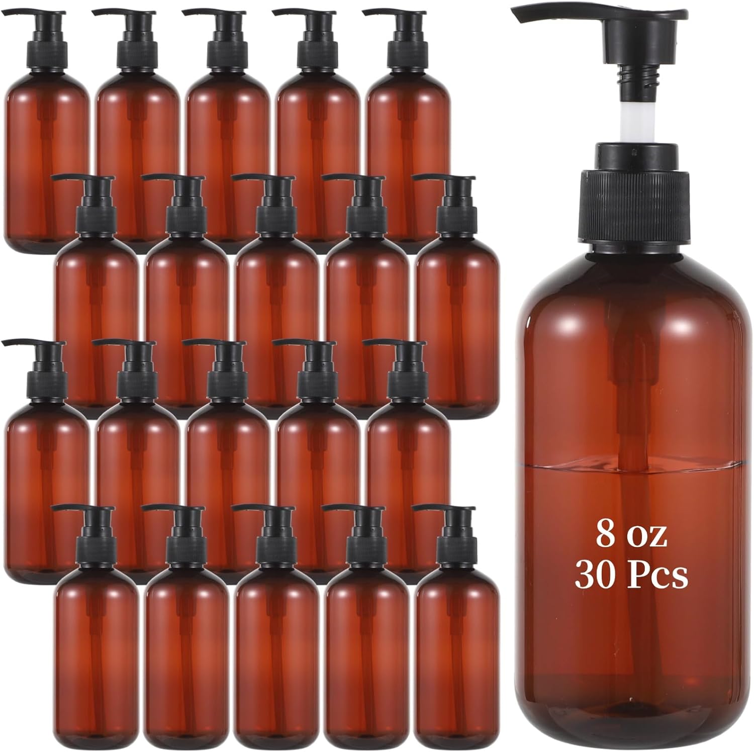 30 Pcs Empty Pump Bottles, 8 oz Plastic Bottles, Refillable Pumping Bottles, Travel Lotion Dispensers with Pumps, Body Wash Containers for Shampoo, Conditioner, Cream, LiquidAmple Set of 30: Includes 30 pump bottles, offering sufficient quantity to meet your daily use and replacement needs; great for bulk storage, crafting kits, or sharing with family and friendsConvenient Travel Size: Measuring 5.8×2.3 inches with a capacity of 8 oz, our pumping bottles easily fit into suitcases, backpacks, or handbags for on-the-go use; ideal for organizing toiletries like shampoo, lotion, and conditionerLeak-Proof Pump Design: Featuring a convenient pump mechanism, these bottles ensure precise control of dispensing without drips or spills, minimizing wasteReliable Plastic Material: Made from sturdy and odorless plastic, our containers withstand daily use without easily cracking, breaking, or rusting; they can be effortlessly cleaned and reusedSemi-transparent Bottle Body: The semi-transparent design allows easy monitoring of remaining contents, ideal for quick refills and staying organized during useColor:amber,clear,blue,greenMaterial:plasticProduct Size: 5.8×2.3 inPackage Includes:30×empty pump bottleNote:- Please refer to the measurement. Tiny measuring error is allowable in normal range.- There might be a little color difference due to the monitor, camera or other factors, please refer to the physical item.