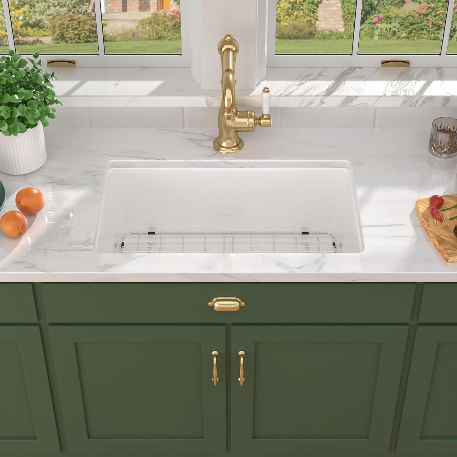 | Included Components | 30 inch white undermount kitchen sink, Bottom Rinse Grid, Drain Assembly |