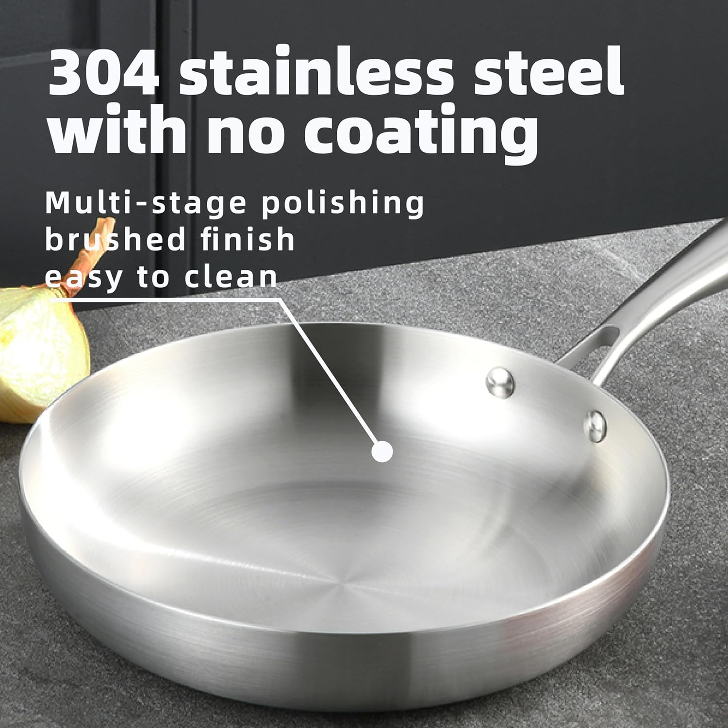 "GadEdgen 304 Stainless Steel Pan – 9.5 Inch Tri-Ply Frying Skillet Elevate your cooking experience with the GadEdgen 304 Stainless Steel Pan, designed for those who demand the best in kitchen cookware. This premium 9.5-inch skillet features a tri-ply construction, ensuring exceptional heat distribution and lasting durability. Whether you’re sautéing vegetables, searing meats, or making a delicious stir-fry, this versatile pan is perfect for all your cooking needs. Premium Tri-Ply Construction for Fast & Even Heating Crafted with a three-layer design, the GadEdgen frying pan boasts an aluminum core sandwiched between two layers of 304-grade stainless steel, providing superior heat retention and even cooking. This construction ensures that your meals are cooked to perfection every time, eliminating hot spots and reducing cooking times. The fast, uniform heat distribution means your food will be evenly cooked without burning or undercooking in certain areas. Compatible with All Cooktops No matter what type of stovetop you use, the GadEdgen frying pan is fully compatible with gas, electric, ceramic, and induction cooktops. The pan's strong base ensures it sits securely on all cooking surfaces, making it a versatile addition to any kitchen. From traditional stoves to modern induction cookers, this pan delivers top-notch performance. Durable, Easy to Maintain Constructed from high-quality stainless steel, this frying pan is designed to withstand the demands of everyday cooking. Its robust construction prevents warping and ensures long-lasting use. Plus, it’s dishwasher safe for hassle-free cleanup, allowing you to spend more time enjoying your meal and less time on washing up. Sleek, Modern Design for Every Kitchen The GadEdgen 304 Stainless Steel Skillet features a sleek, modern design with a polished stainless steel exterior that complements any kitchen décor. The ergonomic handle ensures a comfortable grip, providing better control when moving the pan around. Plus, the handle is designed to stay cool while cooking, adding an extra layer of safety to your cooking routine. Upgrade your kitchen essentials with the GadEdgen 304 Stainless Steel Pan – where style meets function. Whether you're an experienced chef or a home cook, this premium skillet is the perfect tool for making every meal memorable."