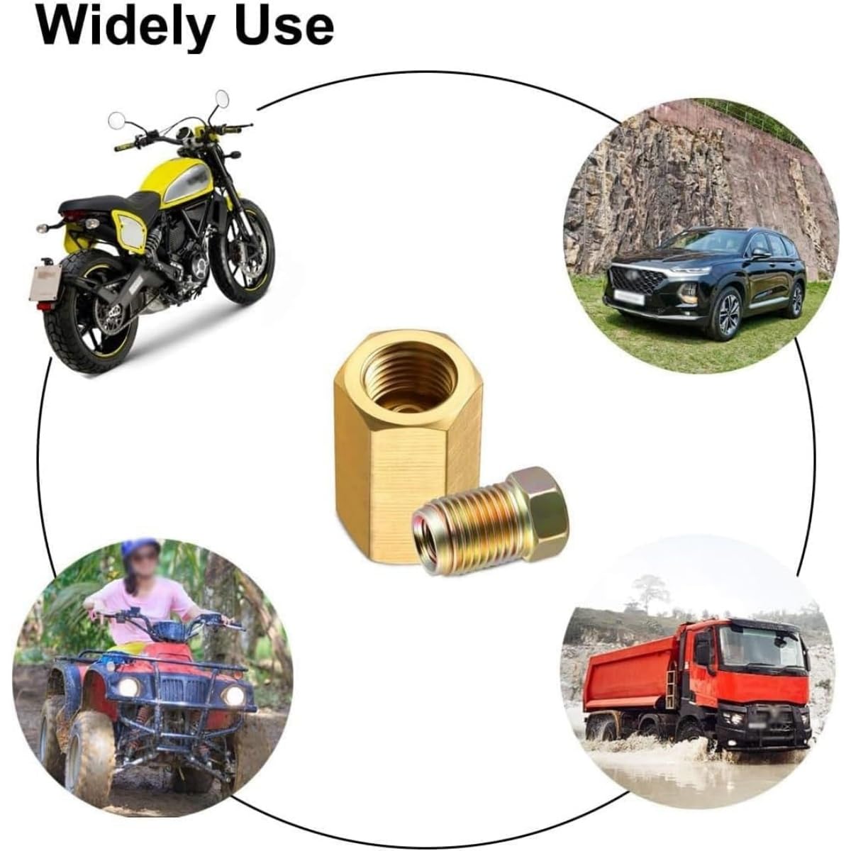 18 Pieces 3/8' - 24 Threads Fittings Assortment for 3/16' Brake Line Tube (6 Unions, 12 Nuts) This listing features 18 pieces of Brand New Brake line fittings assortment, which are made of durable brass. Size: 3/16 Inch tube fitting size, for use with 3/16 inch steel, poly coated or copper brake lines. 100% brand new & high quality All the 18 fittings are included. Fits for Most Hydraulic Braking Systems, Fuel Systems, and Transmission Systems,etc. It is also widely fit for household, industrial and commercial uses. 3/16 brake line fittings Thread size: 3/8 inch( for 3/16 inch tube) Application: It can prevent rust and plated for corrosion resistance. Package Include: 6 x Unions 12 x Nuts
