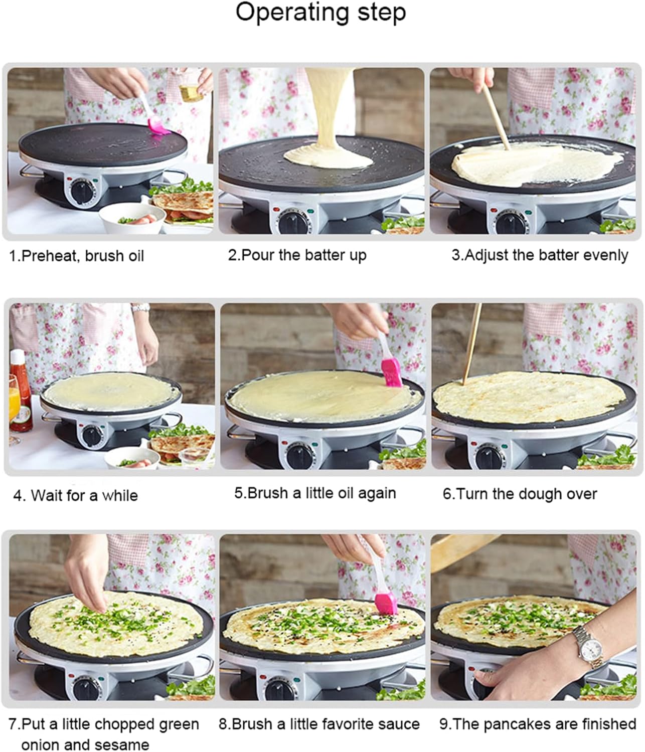 Feature: -Enjoyable Cooking Experience: Elevates family breakfasts with an easy-to-use electric griddle, perfect for hassle-free mealtime. -Compact Design: Easy to store (packaging size: 36 x 14 x 36.5 cm) and transport, with a hot plate that simplifies cleanup. -Quick Crepe Preparation: Makes restaurant-quality crepes in seconds by preheating and spreading batter on the 32 cm cooking surface. -Generous Cooking Surface: A spacious 12-inch (32 cm) cooking area crafted from non-stick aluminum, ensuring effortless flipping and food removal. -Efficient Heating: Features adjustable temperature settings (Low: 165°C, Medium: 198°C, High: 230°C) and rapid heating (3-5 minutes) for quick, delicious meals. Product specifications: Power: 1200W Size: 36*14*36.5CM Weight: 1.77kg Notes: 1. Due to the different monitor and light effect, the actual color of the item might be slightly different from the color showed on the pictures. 2. Please allow 1-3cm measuring deviation due to manual measurement. About Us:Please confirm that the product and packaging are intact after receiving the goods. If you have other questions, you can contact us by email, and we will reply you within 24 hours