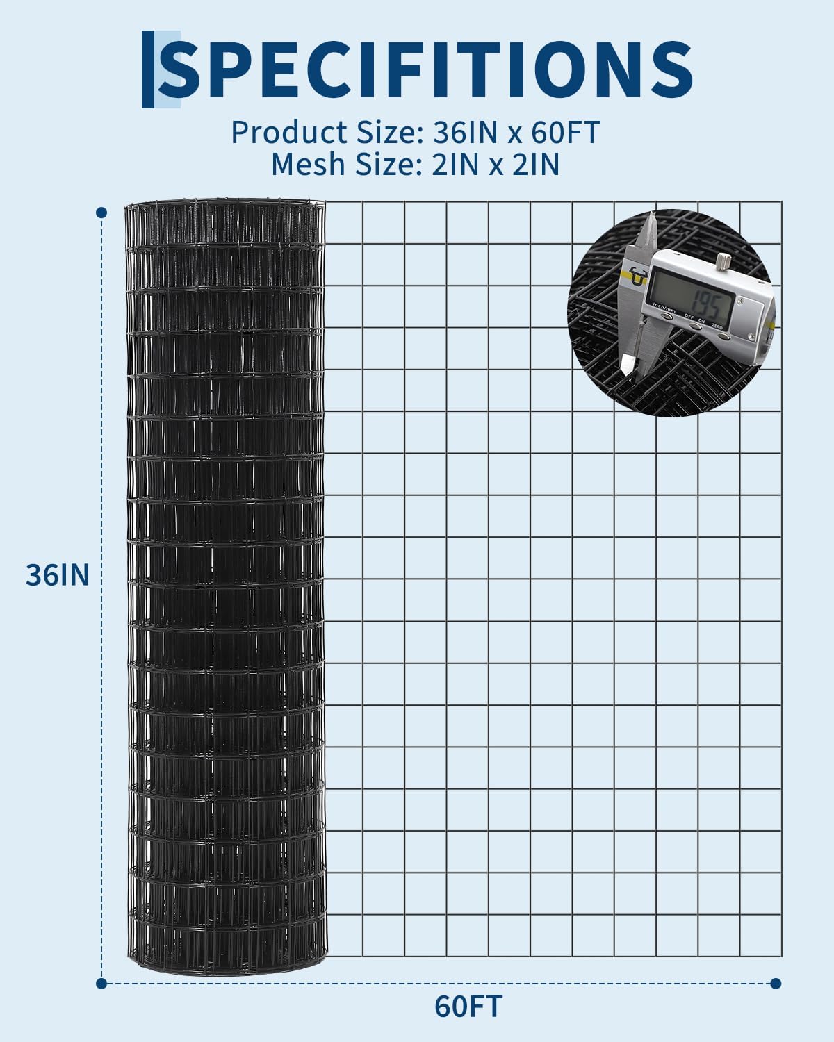 | Size | 2"X2" 16GA 36"X 60' |