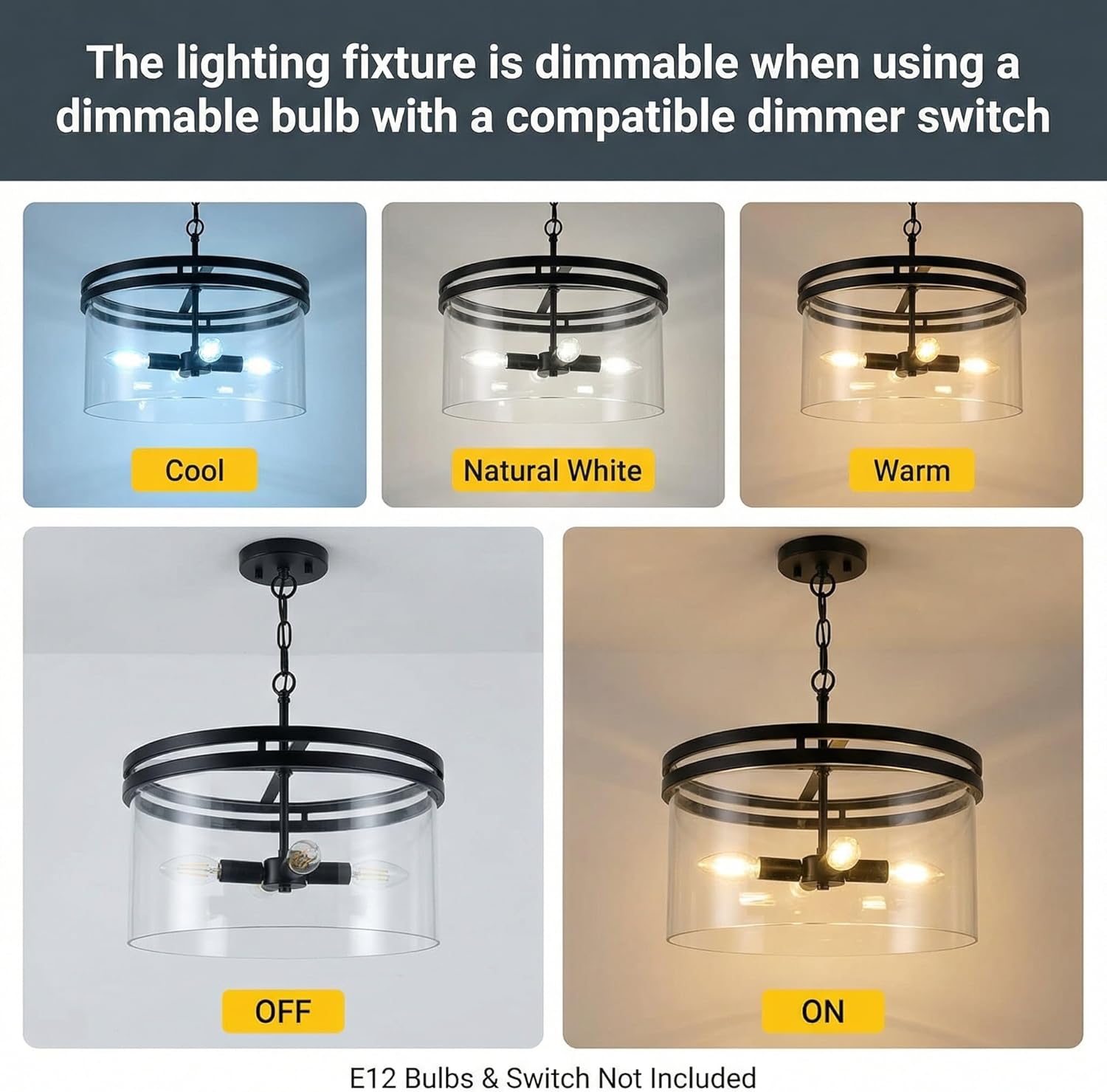 | Light Source | Incandescent, CFL, LED Bulbs (Not Include) |