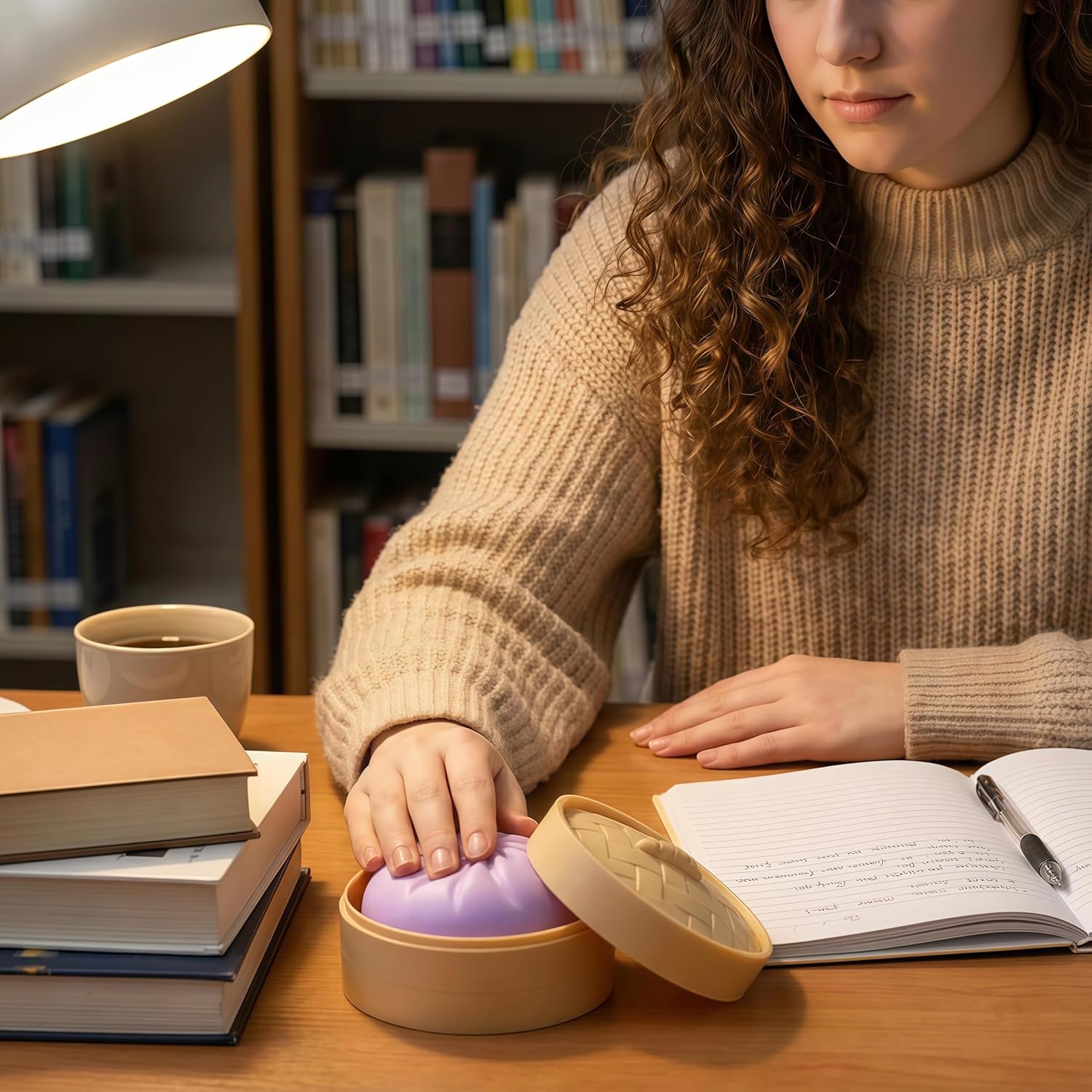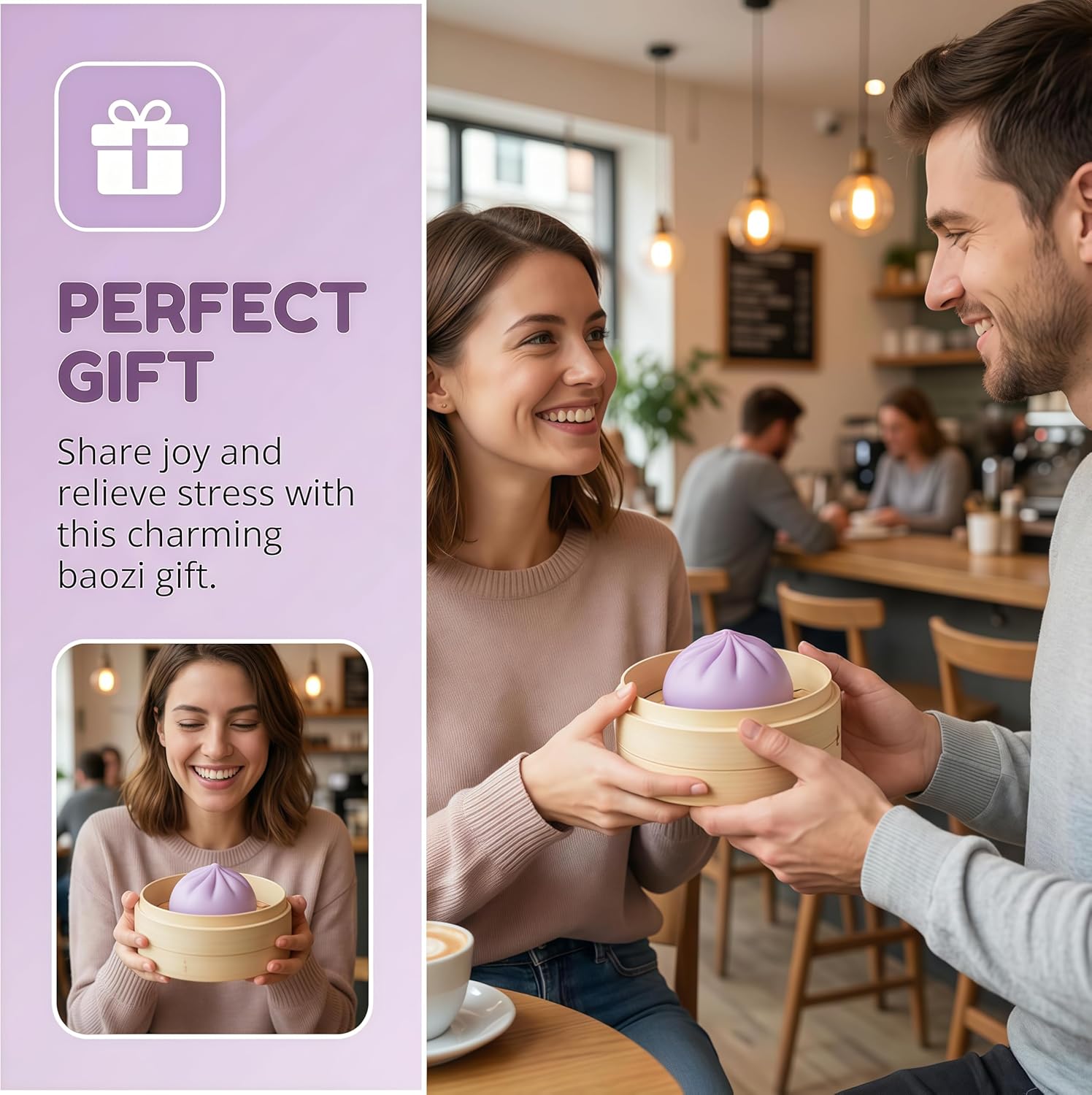 This dumpling squishy toy boasts lifelike dumpling toy appearance paired . This squishy dumpling comes with a decorative steamer basket package of its own, which looks remarkably genuine—making the dumpling squishy look like it has just been steamed and is ready for play. Crafted from TPR that bounces back naturally after every squeeze, ensuring the mystery dumpling squishy is safe for prolonged use. An entertaining gift ideal for birthdays, holidays, or as a desk toy for offices and classrooms. Offers endless fun and stress relief for anyone who adores cute squishy toys. Designed for long-lasting squishing fun, this squishy is tear-resistant and made from safe, non-toxic materials. It's a reliable and sturdy fidget companion for continuous use.