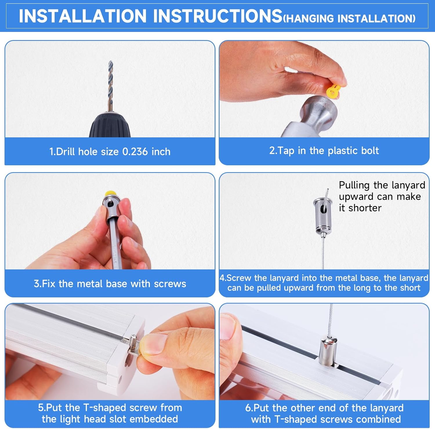 | Included Components | 6 x 66W 4 foot led shop lights, 4 x connector cables 6 x Power Hardwire, 6 x Surface Mount accessories package, 6 x Hanging accessories package, and extra 3 pcs Power cords with ON/OFF switch |