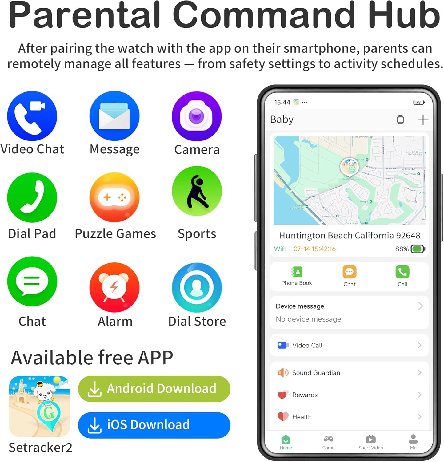 | Additional Features | GPS, Alarm Clock, Camera, Pedometer, Wallpaper Store, Stopwatch, Text, Voice Call, SOS Button, Video Call, Phone Call, School Model |