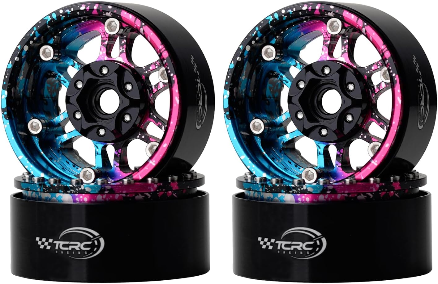 Features: Expertly CNC machined aluminum made. Perfect style shock-proof and high crush-resistant Easy to install,Fits all tire brands Compatible with Traxxas TRX4 Axial SCX10 SCX10 II SCX10 III 90046 90047 Tamiya CC01 RC4WD D90 D110 1/10 RC Crawler Car Specifications: Wheel Size: 1.9" Material: Aluminum alloy Quantity: 4PCS Color: Blue+Pink+Purple+Black (Splash Anodize) Thickness: 26.5mm/1.04in Outer Diameter: 55.5mm/2.18in Inner Diameter: 46mm/1.81in Drive Hex: 12mm Offset: -2.05mm(Negative) Each Wheel Weight: 66g/pc Package Included: 4PCS * 1.9 Inch Wheel Hubs