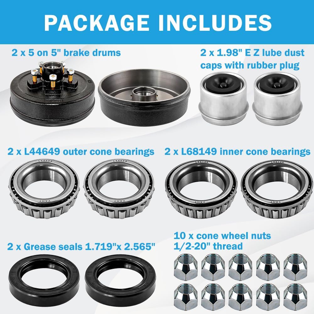 | Included Components | 10" x 2 1/4" Manual Electric Trailer Brake Kits ( Left & Right ), 2X 5 on 5" Bolt Circle Drum Kits |