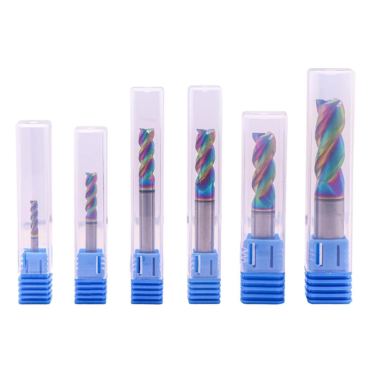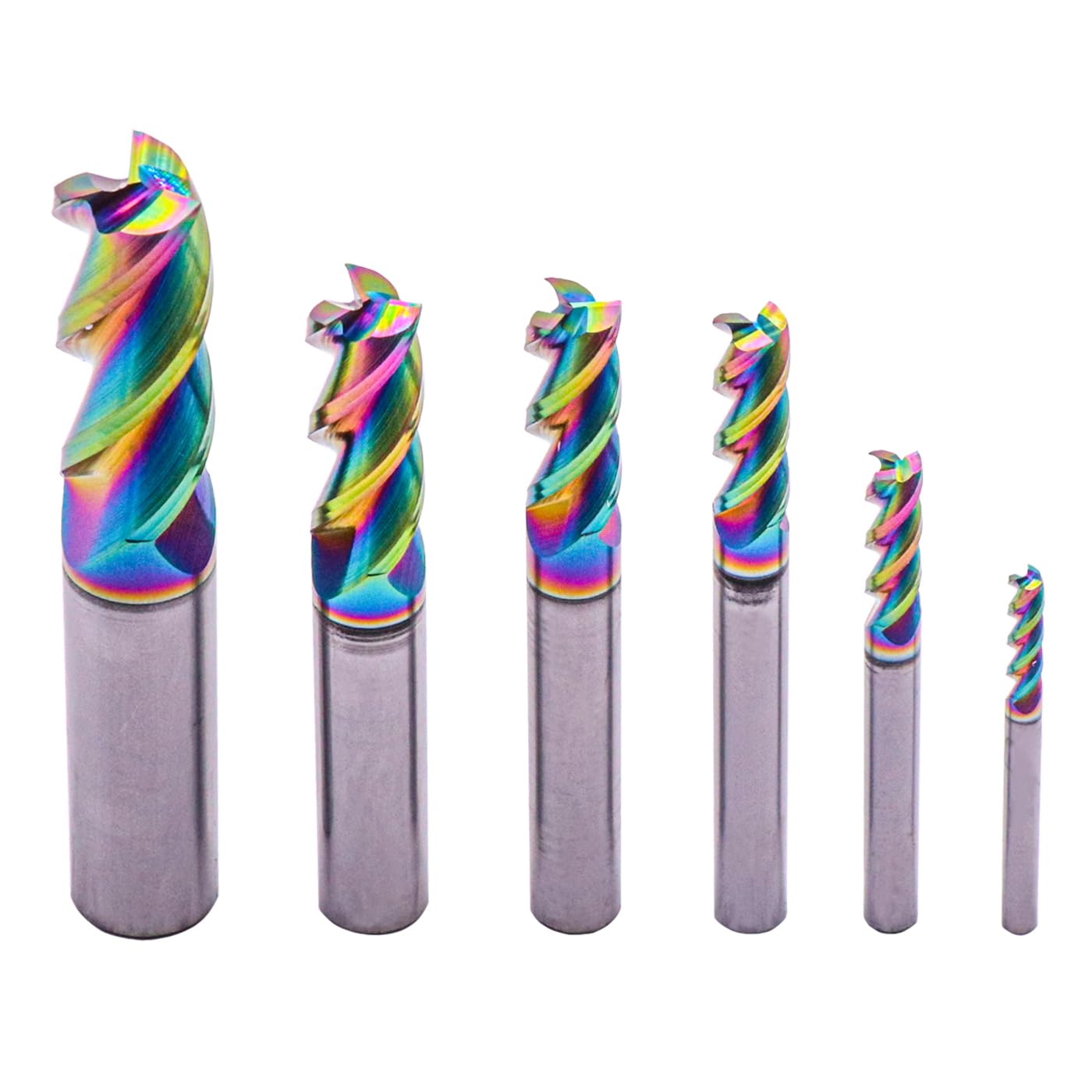 Specifications:3 Flutes, Solid Carbide End Mill, Helix Angle: 45ยฐ, DLC Coated, Square End1/8" cutting diameter x 1/8" shank diameter x 1/2" length of cut x 1-1/2" overall length3/16" cutting diameter x 3/16" shank diameter x 5/8" length of cut x 2" overall length1/4" cutting diameter x 1/4" shank diameter x 3/4" length of cut x 2-1/2" overall length5/16" cutting diameter x 5/16" shank diameter x 13/16" length of cut x 2-1/2" overall length3/8" cutting diameter x 3/8" shank diameter x 1" length of cut x 2-1/2" overall length1/2" cutting diameter x 1/2" shank diameter x 1-1/4" length of cut x 3" overall lengthPackage Included:6pcs 1/8" - 1/2" 3 Flute 45ยฐ Helix Carbide End MillsFeatures:DLC Coating: Dlc(Diamond-Like Carbon) Coating Has Ultra-High Hardness,Low Friction Coefficient, High Temperature Resistance, Good Electrical Insulation, Chemical Barrier, High Thermal Conductivity, Ultra-High Anti-Blocking Performance.3 flute and 45-degree helix allow harmonic balance at high speed condition and smooth cutting.SEFHLI end mill is made from solid carbide, which gives it exceptional toughness, durability, and machinability and offer long tool life and faster cutting speeds than other substrates.Precision ground using the highest quality grinding wheels. High strength and hardness, abrasion resistant, practical, easy to use and durable in use.Application:Application: High velocity milling of Aluminum and Copper.