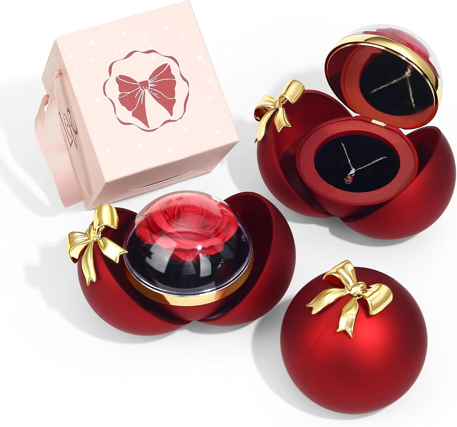 🎁 Complete Gift Experience — No Wrapping Needed Make her feel truly loved with this stunning romantic necklace gift for women—an unforgettable choice among romantic Valentine's Day gifts for soulmate or wife. Beautifully crafted with a premium 925 sterling silver necklace and dazzling 5A grade cubic zirconia, this elegant pendant is delicately presented in a preserved rose gift box. The preserved red rose, nestled inside an eternal rose box, symbolizes timeless love and devotion—perfect for moments that matter. It arrives fully packaged in a festive preserved rose ornament box—making it an ideal choice for those searching for Christmas gifts for wife, romantic birthday gifts, or Mother’s Day gifts from husband. Your Gift Package Includes:✅ 1x 925 Sterling Silver Pendant Necklace✅ 1x Adjustable 40+5 cm Chain with Bolt Ring Clasp✅ 1x Preserved Rose Gift Box (Ornament Design with Gold Bow)✅ 1x Premium Pink Ribbon Gift Box Whether you're searching for the best anniversary gifts for wife from husband, romantic necklace gift for girlfriend from boyfriend, or thoughtful marriage anniversary gift ideas for her, this complete gift is sure to impress. The preserved rose with necklace is not just a jewelry piece—it’s a statement of love, perfect for women who value emotional meaning and elegant design. This red rose with necklace is ideal as a Christmas gifts for girlfriend, Mother's Day jewelry gift for wife, or valentines day gifts for girlfriend. Lightweight (1.96g) yet durable, it’s designed for everyday elegance or special celebrations. An all-in-one package that speaks volumes of your affection—this preserved rose gift box Christmas present for her is one of the most meaningful gifts for soulmate. Whether you’re celebrating your anniversary, her birthday, or your first Valentine’s Day, this romantic gift is sure to make her heart melt. Don’t just give a gift—give her a moment she’ll never forget. This preserved rose and sterling silver necklace is more than beautiful jewelry—it’s a lasting memory in a box. Surprise her with elegance, meaning, and love that lasts beyond the occasion.