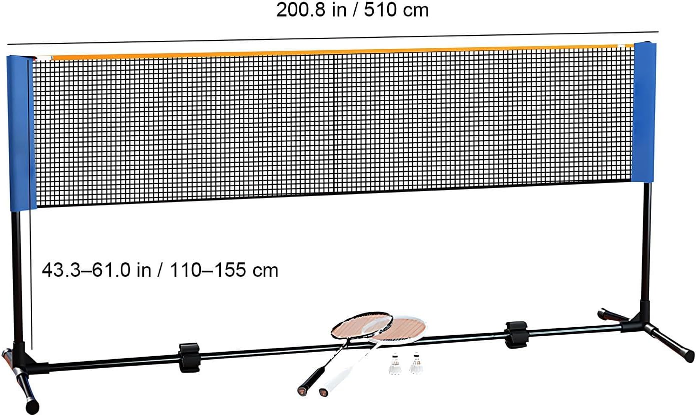 This badminton net frame is suitable for competitions or daily entertainment. It is quick to install and has good performanceThe 2cm dense net design can effectively prevent the ball from flying out. The net surface is accurate and reliableThe integrated extended bracket tightens the net surface to provide better visual coverageThe built-in elastic rope and locking system keep the net flat and not deviatedWhether outdoor or indoor, the wind-resistant structure can cope with it easily. It will not deform after multiple disassembly and assembly【Specifications】Product Name : Portable badminton net setSize : 122.0 in / 310 cm161.4 in / 410 cm200.8 in / 510 cm240.2 in / 610 cmQuantity : 1 piecePackage includes1 x Portable badminton net set