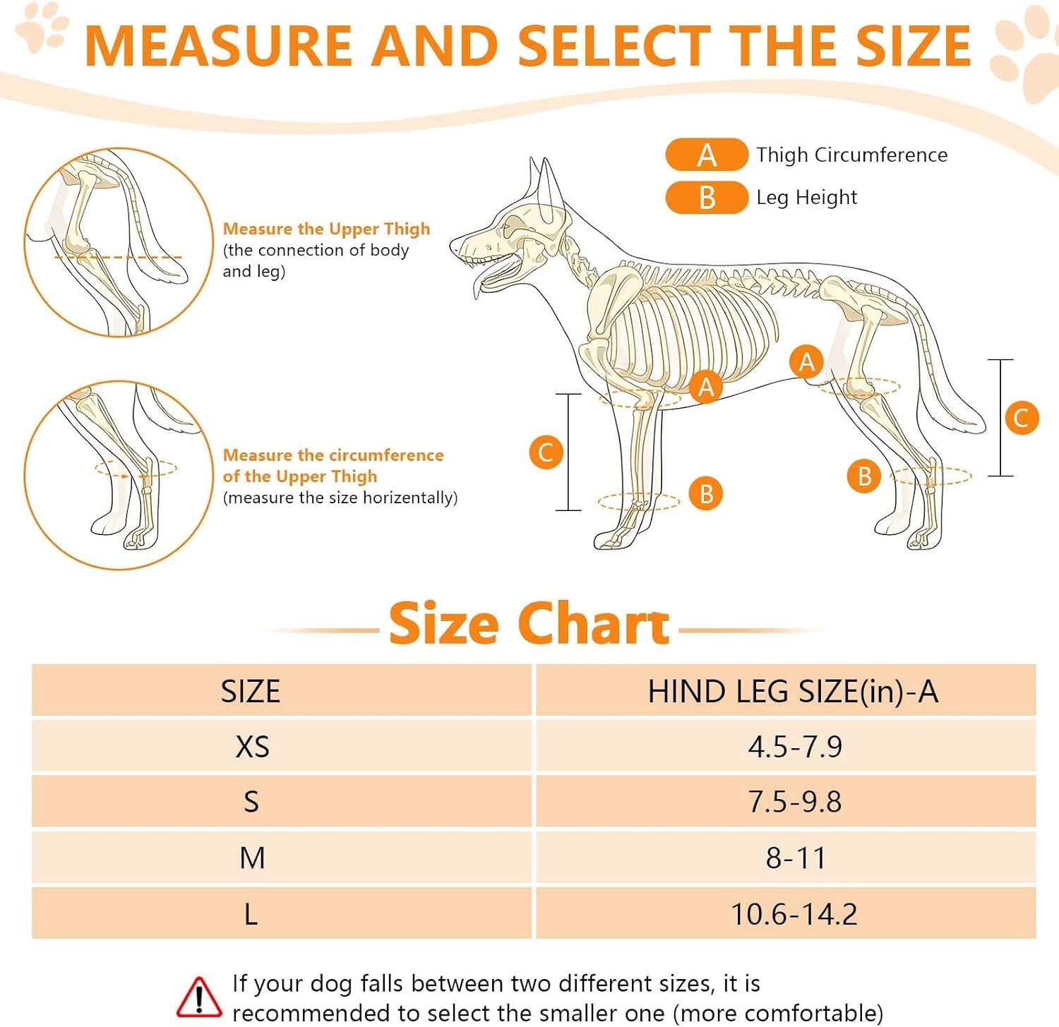 This supportive ACL brace for dogs offers comfortable knee and hind leg support. Perfect for preventing, aiding recovery from, or protecting against injuries such as torn cruciate ligaments, dislocation, and osteoarthritis. Adjustable straps wrap around your pet's knee joint for extra compression and protection. Available in small, medium, and large sizes, this black pair will keep your canine companion walking tall.