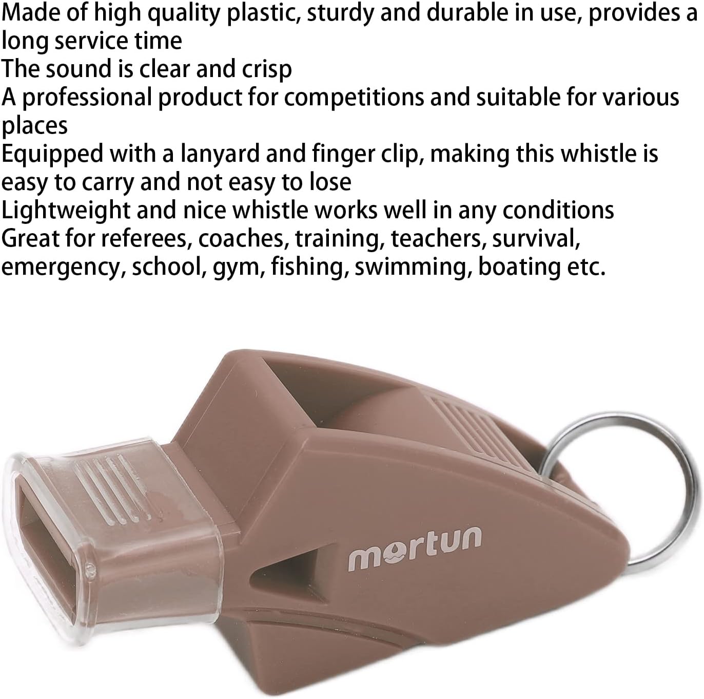 1. Made of plastic, sturdy provides a long service time. 2. The sound is clear and crisp. It is a professional product for competitions and is suitable for various places. 3. Equipped with a lanyard and finger Clamp/Holder, making this whistle is easy to carry and not easy to lose. 4. Lightweight and nice whistle works well in any conditions with excellent airflow design. 5. Great for referees, , training, teachers, survival, emergency, school, gym, fishing, swimming, boating etc. Specification: Item Type: Whistle Material: Plastic PackageList: 1 x Whistle 1 x Lanyard 1 x Finger Clamp/Holder