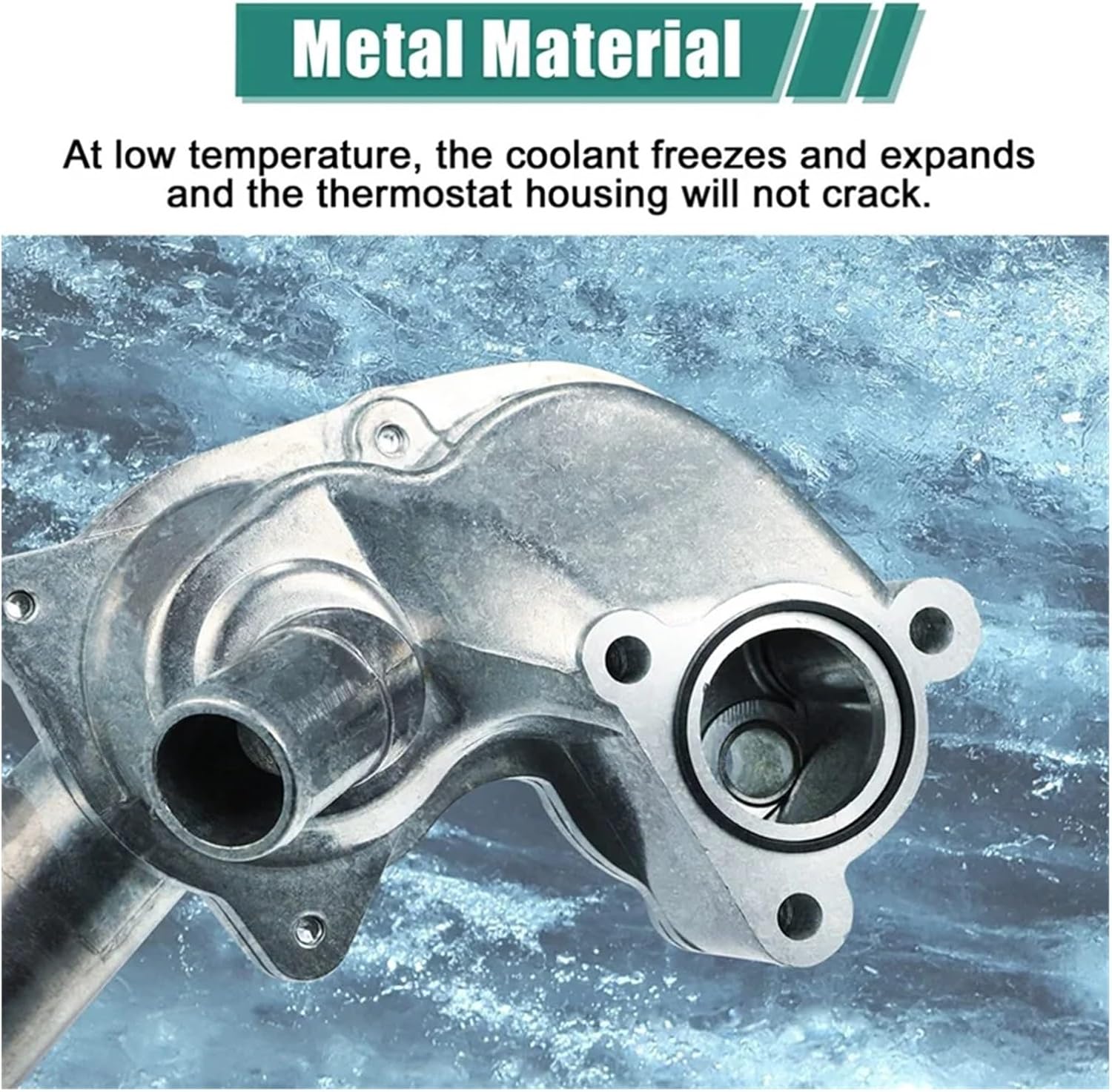 Aluminum Thermostat Housing Assembly For Ford Mustang 2005-2010 Accessories Upgrade 5R3Z-8592-BA 5R3Z8592BA [ Fitment ] for Ford for Mustang 4.0L V6 A/T Base Convertible 2005-2010,for Ford for Mustang 4.0L V6 A/T Base Coupe 2005-2010 [ OE Number ] 5R3Z8592BA,5R3Z-8592-BA [ Function ] The single sensor thermostat fixes the coolant leakage problem, and the thermostat housing ensures that the engine works in the proper temperature range by regulating the amount of coolant entering the radiator, reducing engine wear, and controlling engine emissions. [ Feature ] The aluminum alloy shell can withstand extremely low temperature, is not easy to wear, has stable performance and long service life. [ Direct Installation ] Easy to install, no need to completely disassemble the engine, professional installation is recommended. Color: Silver Material: Aluminum Alloy Package Contents: 1x Thermostat Housing Assembly Only the above package content, other products are not included. Note: Light reflection and different displays may cause the color of the item in the picture a little different from the thing. The measurement allowed error is +/- 1-3cm.==========Material : Aluminum AlloySpecification 1 : Thermostat Housing AssemblySpecification 2 : for Ford MustangSpecification 3 : Mustang ThermostatSpecification 4 : 5R3Z8592BASpecification 5 : Mustang Accessories