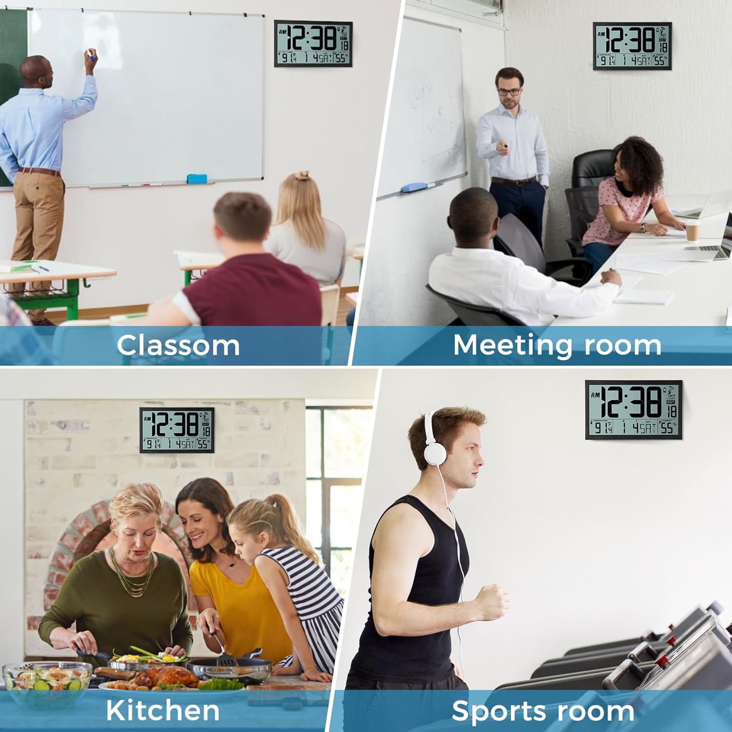 • 【 Large Display Wall Clock】The digital wall clock use with the 3*AA batteries(Not included),and the digital calendar clock will automatically receive the radio control signal and set the correct time and date in 7 minutes,With 16.7" large display screen,easy to read,Even at a long distance,it can be read clearly,which is friendly for the elderly.Ideal for your home,office,school,bedroom classroom or church.Please note:South America cannot receive signals at all. The strength of radio wave signal reception is affected by the distance from the base station, the consumer's living environment, and household appliances. The closer to the base station, the stronger the signal.
