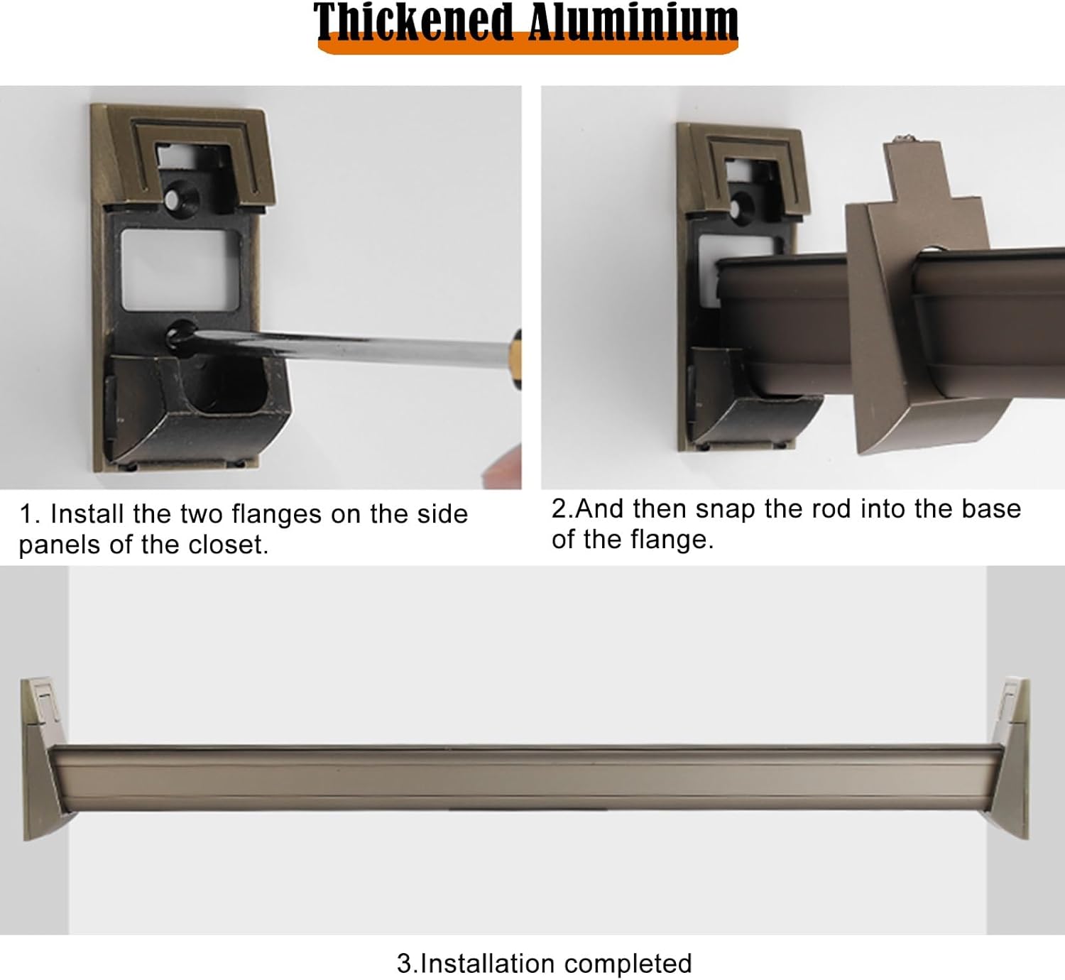 -- Are you still worried about the pile of clothes at home?- Our closet hanging rod not only can you get your clothes better sorted and make the most of your storage space, but it also makes your clothes look neater. 【Specifications】- Material: Aluminum Alloy- Length: Cuttable- Thickness: 3.5 mm- Load: 150kg/ 330lbs- Assembly: Required【Features】- Creates extra hanging space in a small space closet.- Sturdy and , can hold a lot of clothes without wobbling.- Non-slip design to prevents your clothes from contacting the wall.- Perfect for expanding your wardrobes or using as aspare open closet.- Used bathrooms, closet, windows, doorway, bedrooms, balcony, patio, etc.【Package Contents】1 × Closet Rod (Includes Installation Accessories: Brackets, Screws)【Note】- There may be an error of 1-3 cm due to manual measurement.- There may be chromatic aberration due to the difference between the recording lamp and the display. Please refer to the actual product.