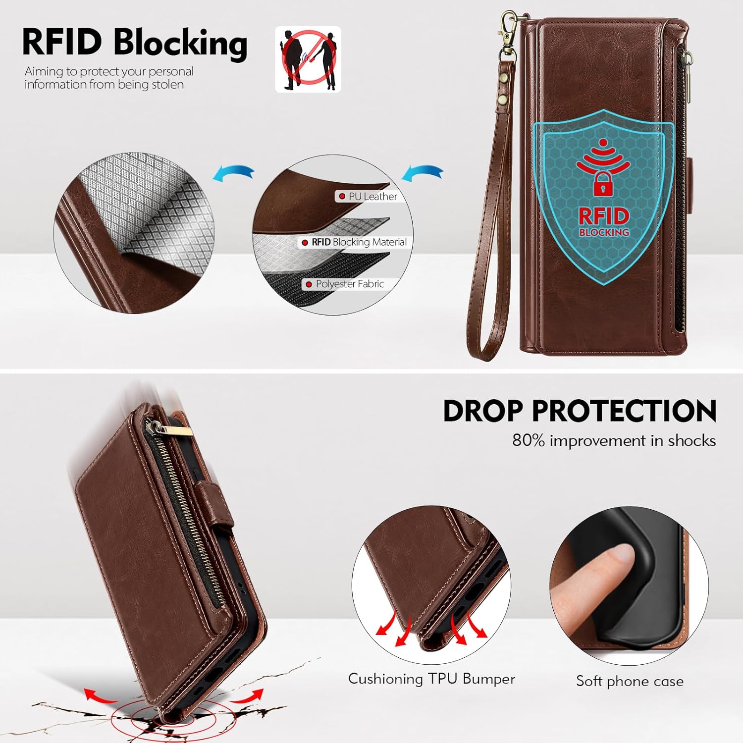 | Additional Features | Card Slot, Kickstand, Magnetic, RFID Blocking, Shockproof TPU |