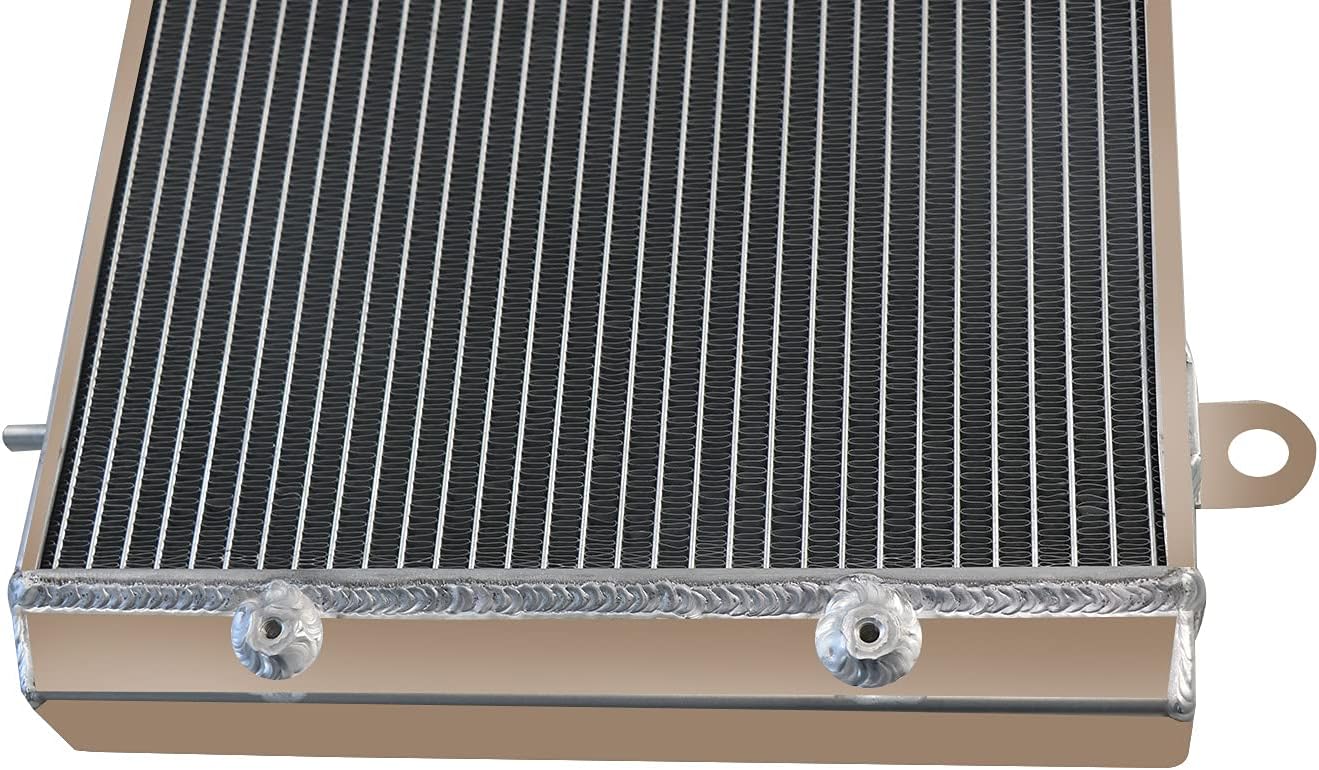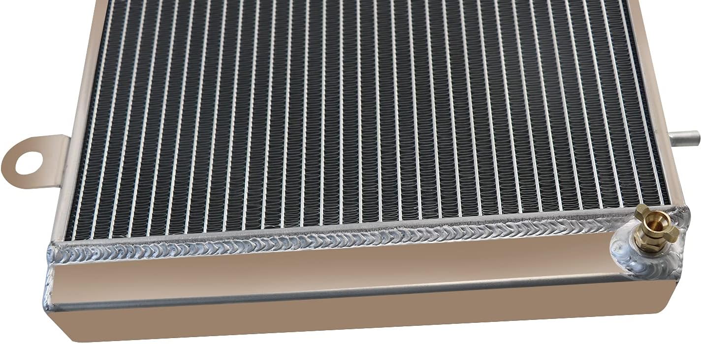 This Aluminum Radiator is designed to provide maximum cooling efficiency to prevent premature engine failure. Its light-weight, and high-heat transferring aluminum features a tube and fin design that, dramatically increases surface area that enables the heat to dissipate more efficiently. This Aluminum Radiator is at least 30%-45% more efficient than stock ones. Most importantly, it has a much higher capacity for coolant than stock ones, which means that your cooling system will be more efficient and will be more resistant to temperature surges in racing applications. Radiator Size: High Performance Racing Spec. 2-Row of tubes Core Racing Design Core Size: 15-3/4"H x 12-3/4"W Overall Dimensions: 18 9/10'' W × 14 9/10'' H Depth: 1-1/4" Inlet: 1" Outlet: 1" CNC Precision Machined Radiator Cap OEM Style Brass Petcock Drain. Vehicle Fitment: 2007-2009 Ranger 500 2x4 2007-2008 Ranger 500 4x4 2006-2009 Ranger 700 EFI 6x6 2008-2009 Ranger 700 EFI Crew 4x4 2007-2008 Ranger 700 EF