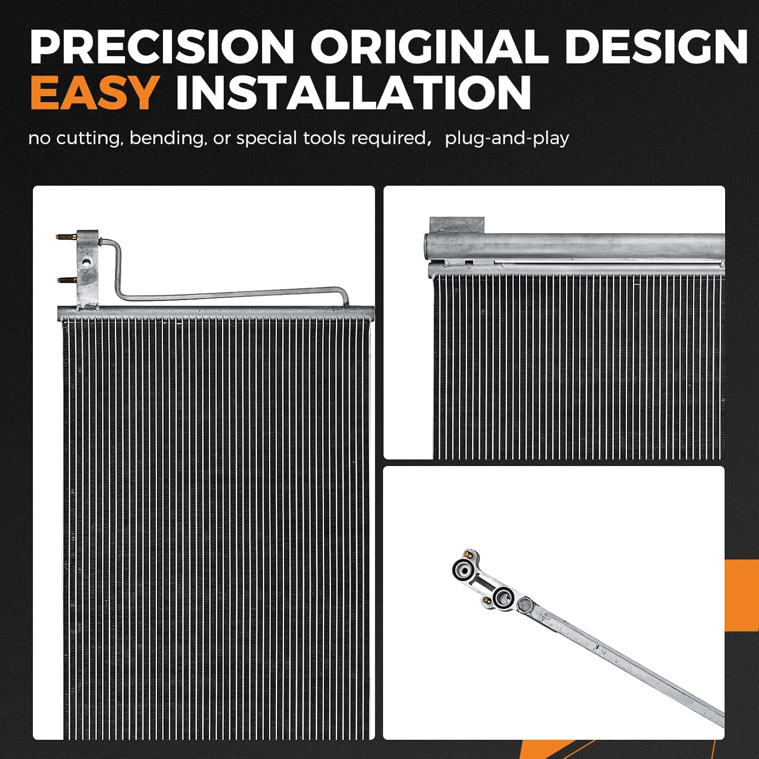 🌟Compatibility🌟✔️ Fit for 2012-2014 Ford Focus 2.0L GAS✔️ Fit for 2012-2014 Ford Focus 2.0L FLEX✔️ Fit for 2012-2014 Ford Focus -- BATTERY EV (EV/BEV)🌟Specification🌟Type: 100% Brand New A/C Condenser ReplacementCore Material: AluminumRefrigerant Compatibility Type: R134-AInlet/Outlet Fitting Design: BlockBuilt-in Receiver/Dryer: YesBracket Included: YesPartslink #: FO3030236OE #: AV6Z19712A; CV6Z19712A; CV6Z19712JCore Information: Core Thickness:0.625IN); Core Width:14.88(IN); Core Length: 27.52(IN)Weight: 8.00 (LB)🌟Features🌟All brackets and fittings are made with virgin aluminum to ensure purity of material and strength in brazing bond.All our tubes are zinc coated to better handle salt corrosion, especially for areas near the coast or with heavy snow.Our ac condensers feature a parallel flow design to increase cooling efficiency.Our fin edges are folded for increased stability and heat disbursement properties.Our tubes feature a 5mm fin height which allows for a greater cooling surface.Tube-and-fin configuration strictly follows OEM design to ensure maximum heat transfer and performance during pressure drop.🌟Service & Support🌟Professional 7/12 Customer Support Team——Whether you have any questions or uncertainties, please feel free to contact us at any time.