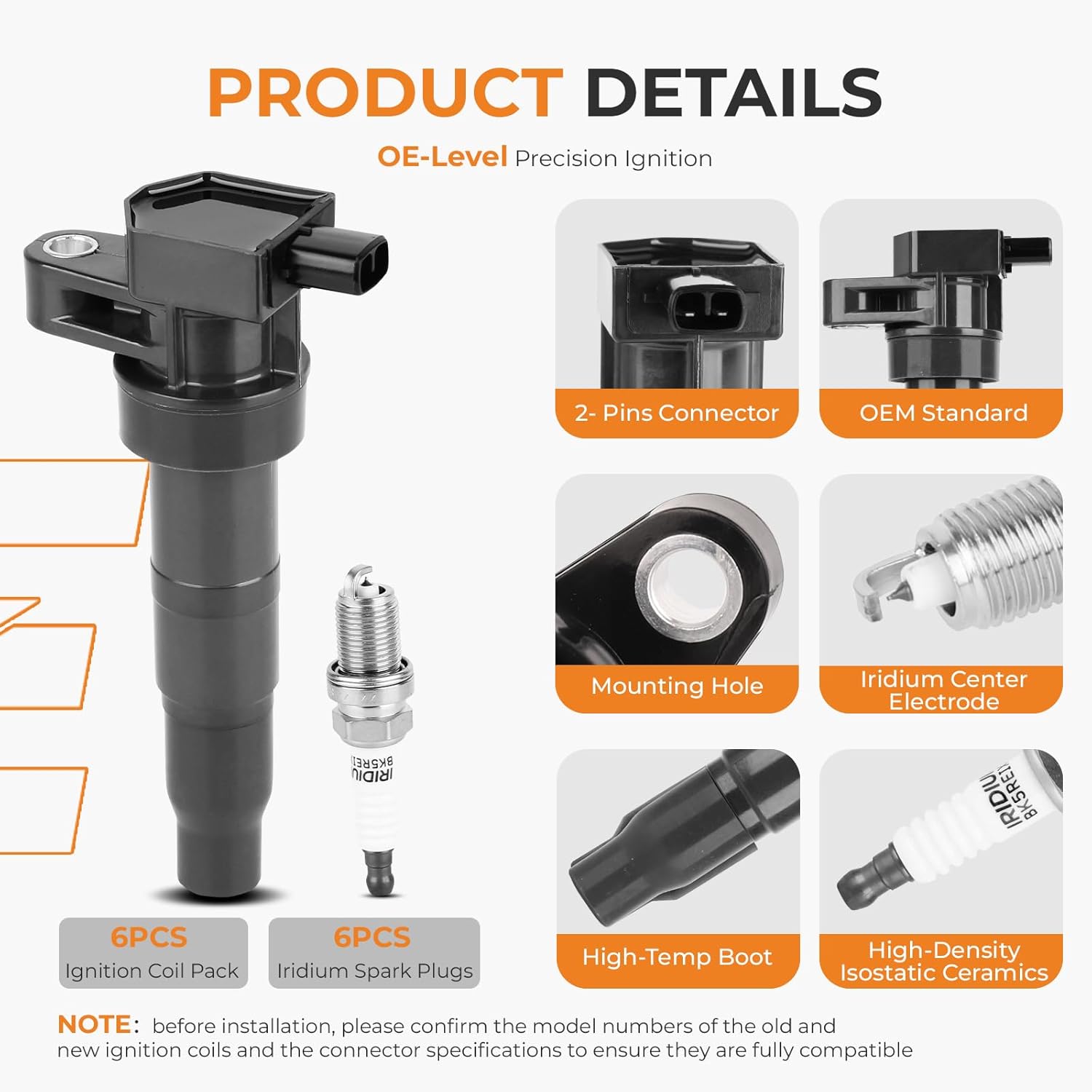 | Included Components | 6pcs Ignition Coils, 6pcs Iridium Spark Plugs |
