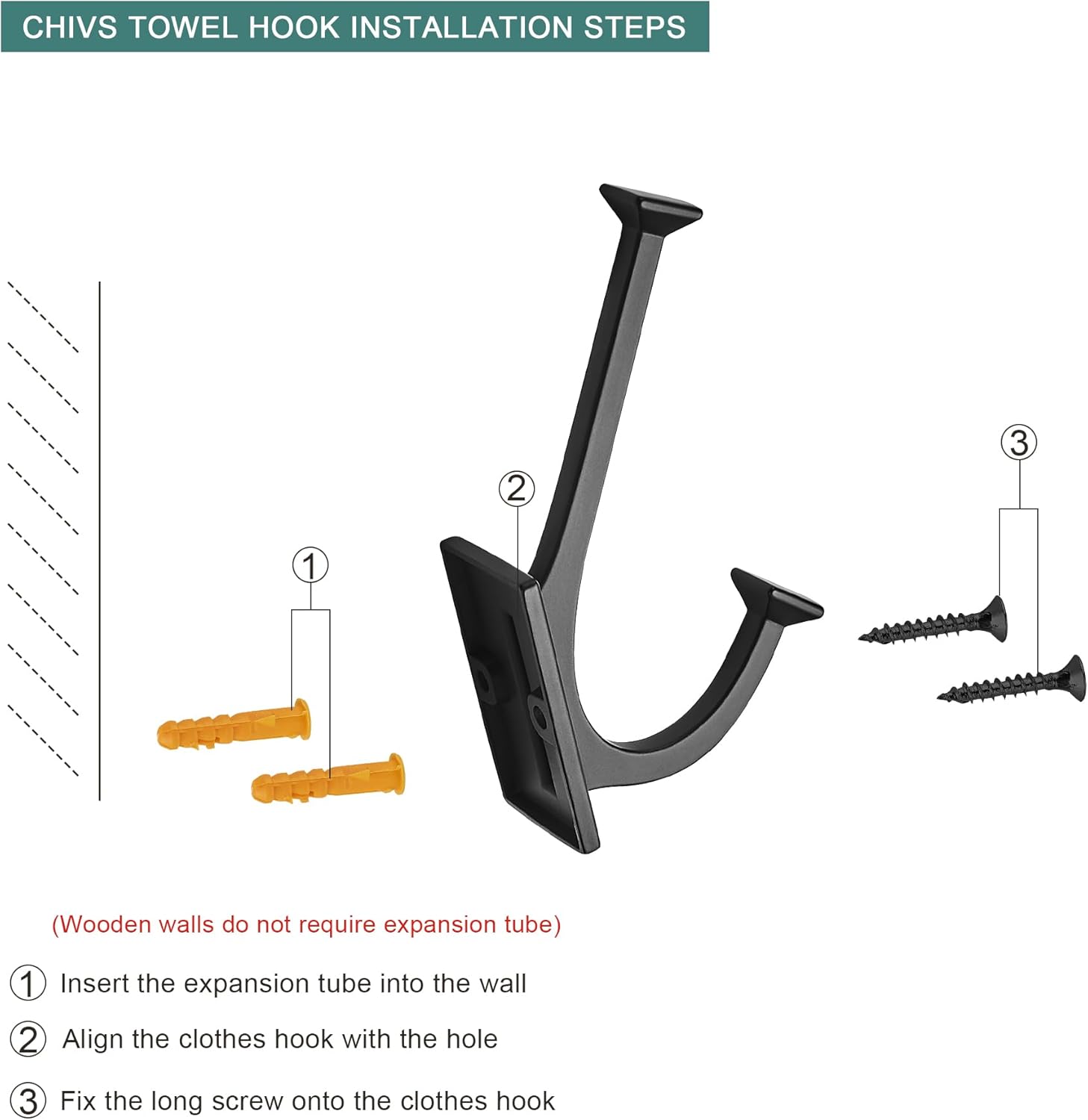 Our hooks are designed with double hooks, hanging jackets, coats, hats, scarves, towels, keys, umbrellas, bags, Christmas stockings and Christmas wreaths to keep your home organized. Perfect for bathrooms, bedrooms, kitchens, closets, hallways, entrances and more. Recommended for installation on solid wood or wooden surfaces. Just choose where you want to install. Drill holes and screw the wall hooks into place for easy installation.