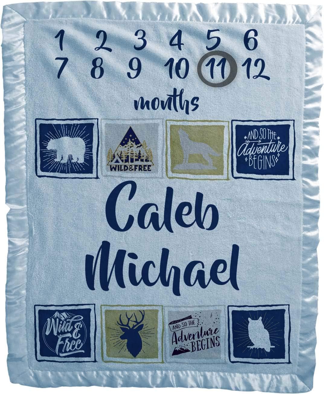 This personalized baby blanket makes an Ideal gift for a newborn, Christening, Baby Shower, Baptism also makes a gorgeous receiving blanket for a new mom on a first day from a hospital. Makes adorable baby room decor with a woodland animal adventure theme. The custom personalization is permanent water-based print - a special fiber dying process, so it is 100% safe, nontoxic which will last through all the washes and very important, NOT SCRATCHY like embroidery or screen print or other decoration processes. This custom dye process is the same process that baby bedding manufacturers use to print patterns on the micro plush fleece baby blankets that are part of the fabric and have no feel to them at all. So if you want only the best for the blanket recipient while giving a totally customized gift, this is it! They will be able to use the blanket, wash it and treasure it as a keepsake. Super plush and soft blanket keeps the little one warm and soft. MATERIAL: 30X40" SIZE BLANKETS are Fleece Micro Plush : unlike regular fleece this blanket has soft furry feel to it ( that is the micro plush part ) so if you run your hand over it, you will feel soft plushness and direction of the name, just like petting a soft animal fur. It will wrap the baby in luxury. The 30x40blanket material is micro fleece. Trimmed is luxury satin on all four edges both sides. CARE: Wash on gentle cycle in cold or warm water, air dry or delicate dry in the dryer.